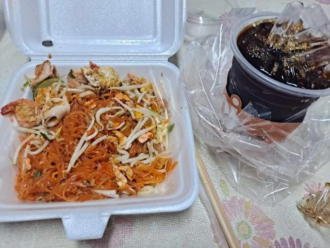 그날도 고민 없이 팟타이를 시켰고 함께 간 펜 선생님은 돼지고기덮밥을 시켰다.