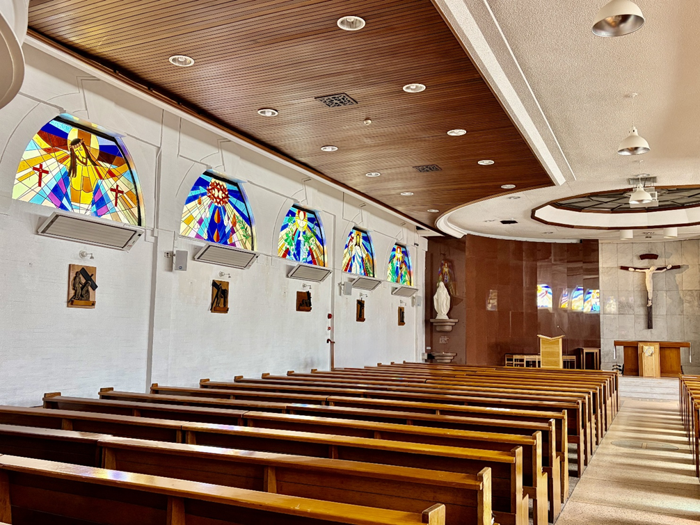 아주머니 한 분이 매우 열심히 기도하고 계셨는데 사진을 찍으면 방해가 될까 조심스러웠다. 마침내 기도가 끝나신 것 같아서 내가 앞쪽으로 가까이 가서 성전 사진을 찍으려는데 아주머니는 한껏 기지개를 켜시더니 다시 처음부터 묵주 기도에 돌입하셨다.
