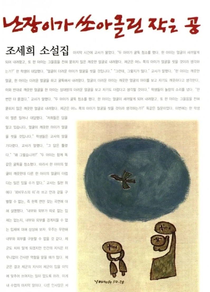 작고하신 소설가 조세희 작가님이 말한것처럼 소설 ‘난장이가 쏘아올린 작은공'이 더 이상 읽히지 않는 변화의 시대가 왔으면 좋겠다고 하셨지만, 애석하게 지금도 여전히 ‘난쏘공’은 읽히고 있다.