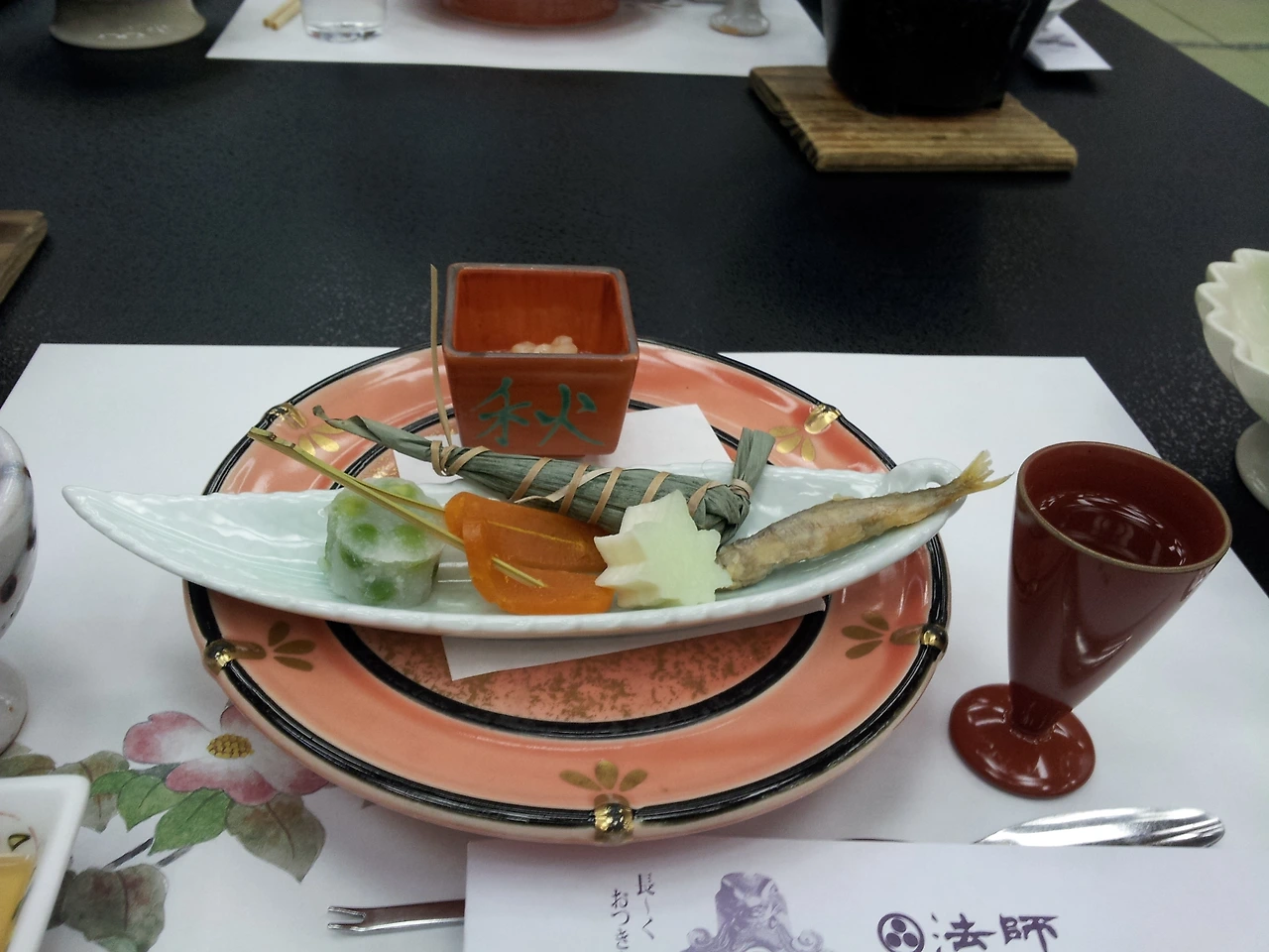 온천 할 동안 밥이 차려져 있다.