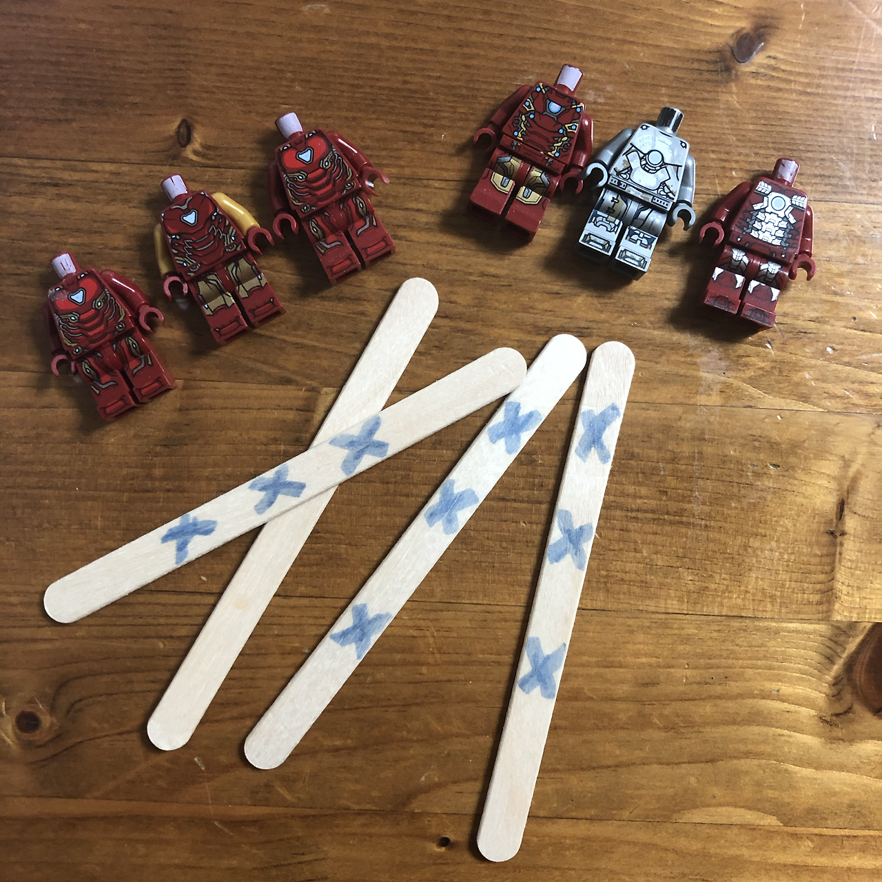 나는 태연하게 대답하고 부엌에서 아이스크림을 먹고 남은 나무 작대기 네 개를 잽싸게 챙겨 얼른 한 면에 엑스표를 세 개씩 그었다. 내가 윷을 만드는 모습을 보더니 아들이 말을 챙겨 왔다. 말은 아이언맨 레고 인형 여덟 개.