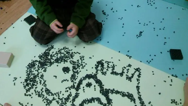 인터넷에 '자갈'만 치면 판매용 자갈들이 쭈욱 나온다. 흰 자갈은 가루가 나오므로 검정이나 색자갈을 구매한다. 처음에는 그냥 검정이 좋을 것 같다. 그림이 분명하게 드러나기도 하고 일단 여러 색을 놓게 되면 엄마의 욕심(나의 경우 색깔별로 아이가 모으기를 바란다거나, 색이 섞이면 정신도 같이 섞여버린다거나)이 생기게 되므로 한 가지 색만 가지고 노는 것도 나쁘지 않을 것 같다.