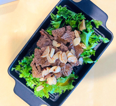 구이용 소고기 중 좋아하는 부위로 만들어요. 샐러드에는 두꺼운 고기보다는 얇은 고기가 어울려요.