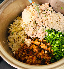 양념: 소금, 간장, 굴 소스, 고춧가루, 다진 파, 다진 마늘, 달걀 등등. (집집 마다 양념 레시피는 다 다르니 입맛에 맞게 골라 넣기.)