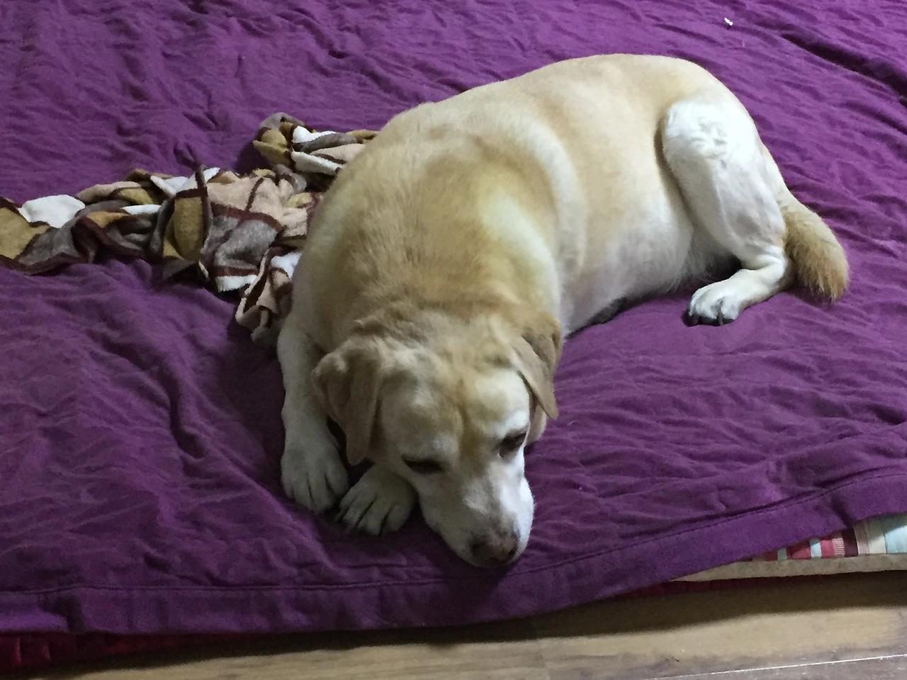 녹내장과 암으로 두 눈의 시력을 모두 잃은 루피는 주인이 올 때까지 얌전하게 조용히 자리에서 기다린다. 몇 시간이고 이런 자세로..