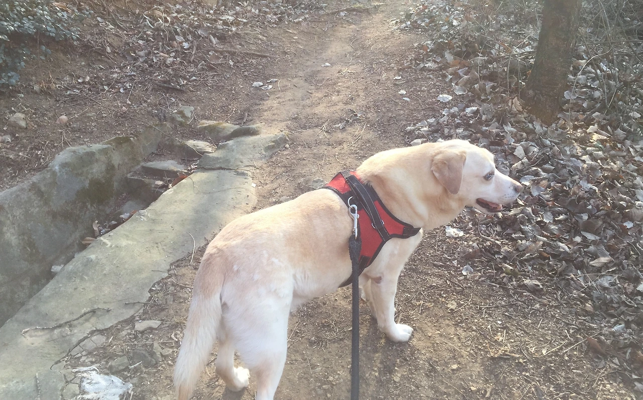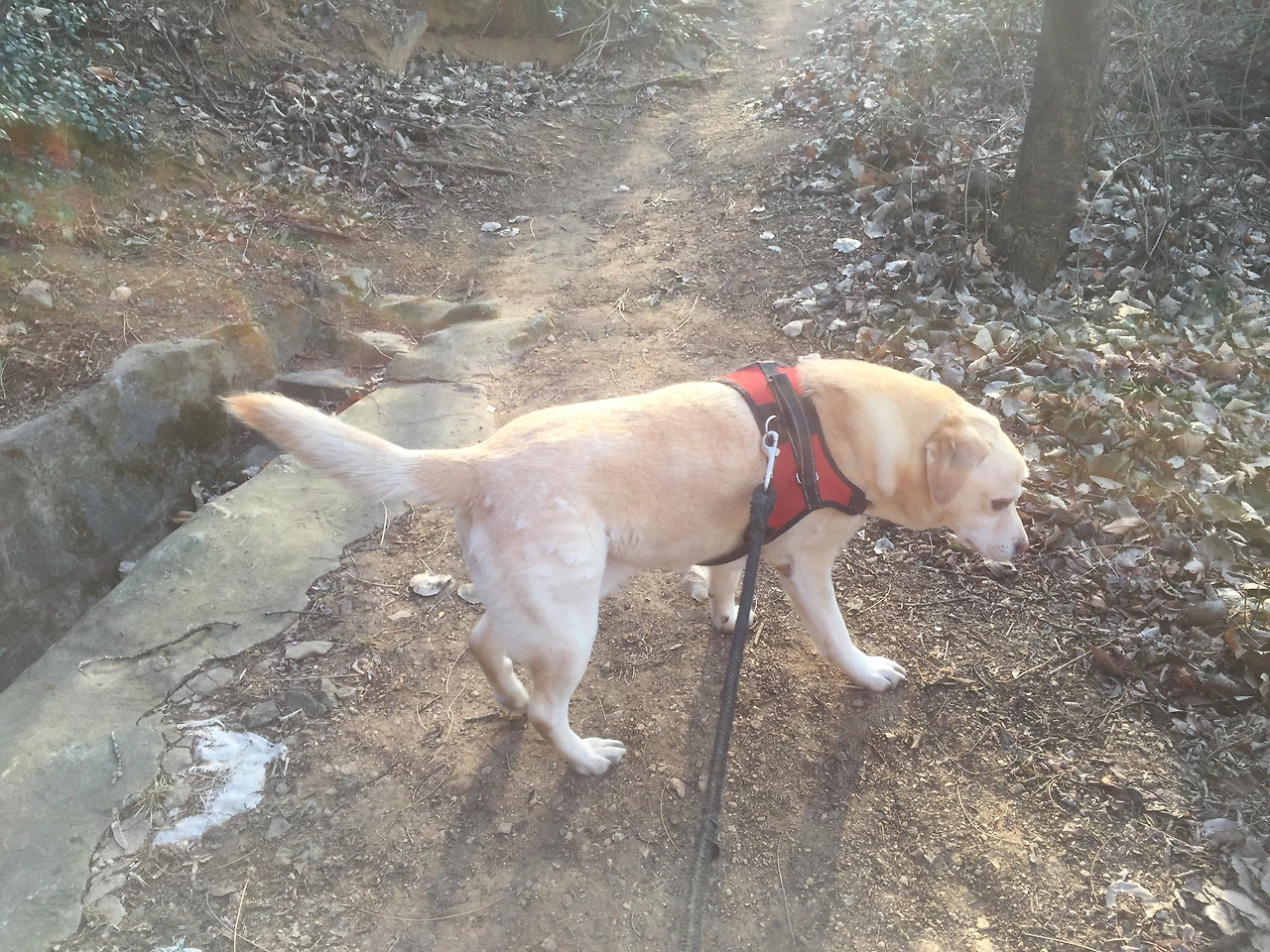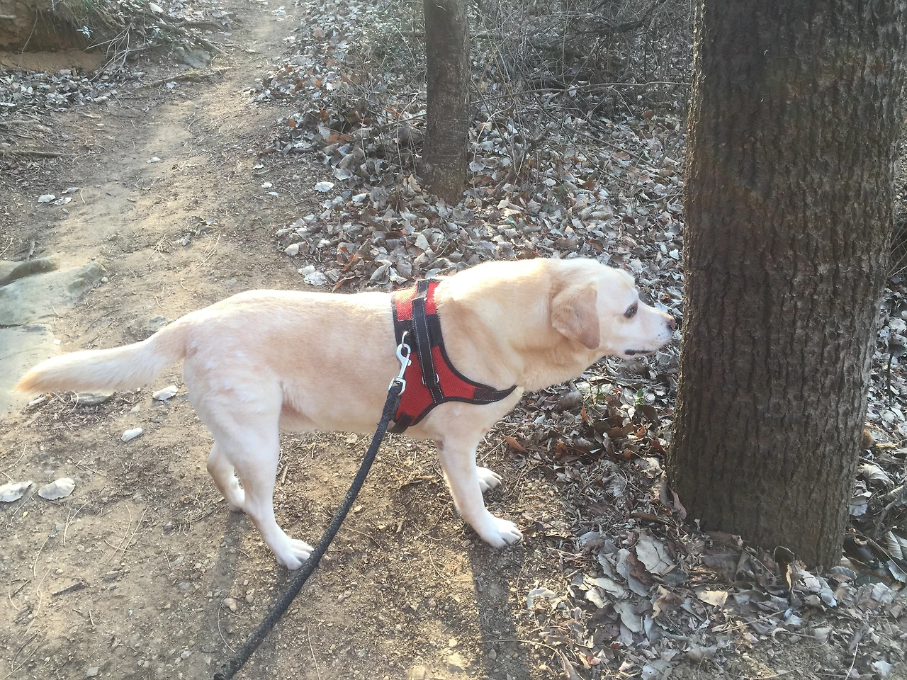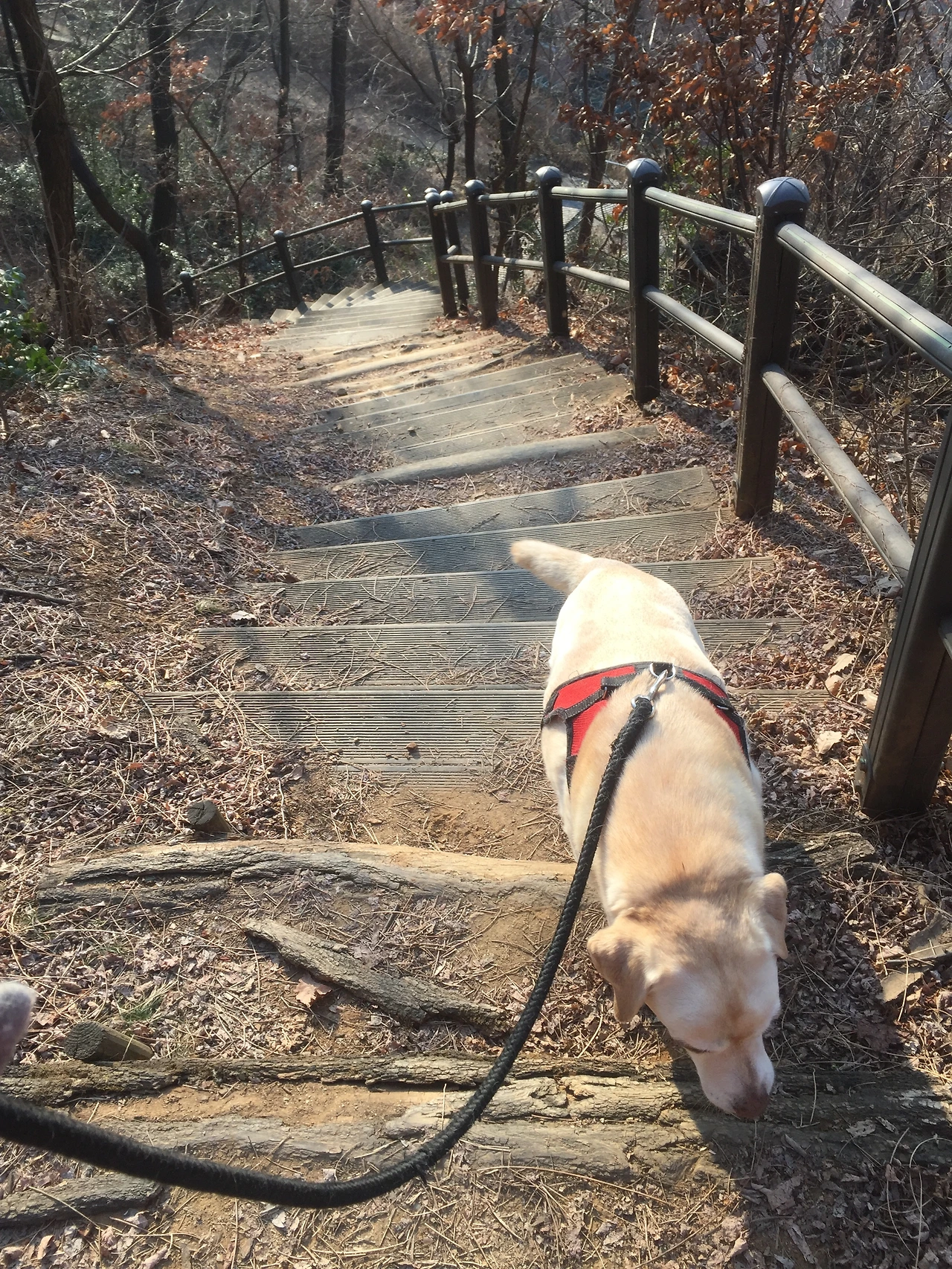 오늘은 시각장애견이 된 후 처음으로 동네 뒷산에 올랐다.