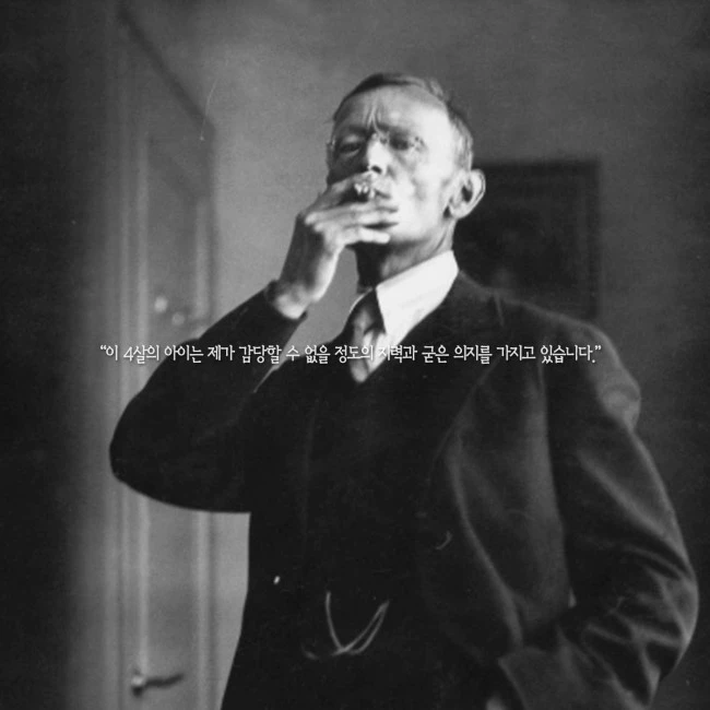 헤세는 어린 나이부터 범상치 않은 재능을 보여주었다고 한다. 그가 4살이었을 때 헤세의 어머니는 “이 4살의 아이는 제가 감당할 수 없을 정도의 지력과 굳은 의지를 가지고 있습니다.” 라고 말할 정도로 헤세는 일종의 천재성을 보였던 것으로 보인다. (하지만 세상 모든 어머니가 자신의 아이를 천재라 믿으니 신빙성이 떨어지긴 한다) 거짓말 같아 보이지만 우리로 치면 초등학생 시절에 이미 라틴어로 시를 짓는 일을 즐겼으니 헤세의 어머니 말이 자식 사랑에서 우러나온 것만은 아니라는 것을 알 수 있다.