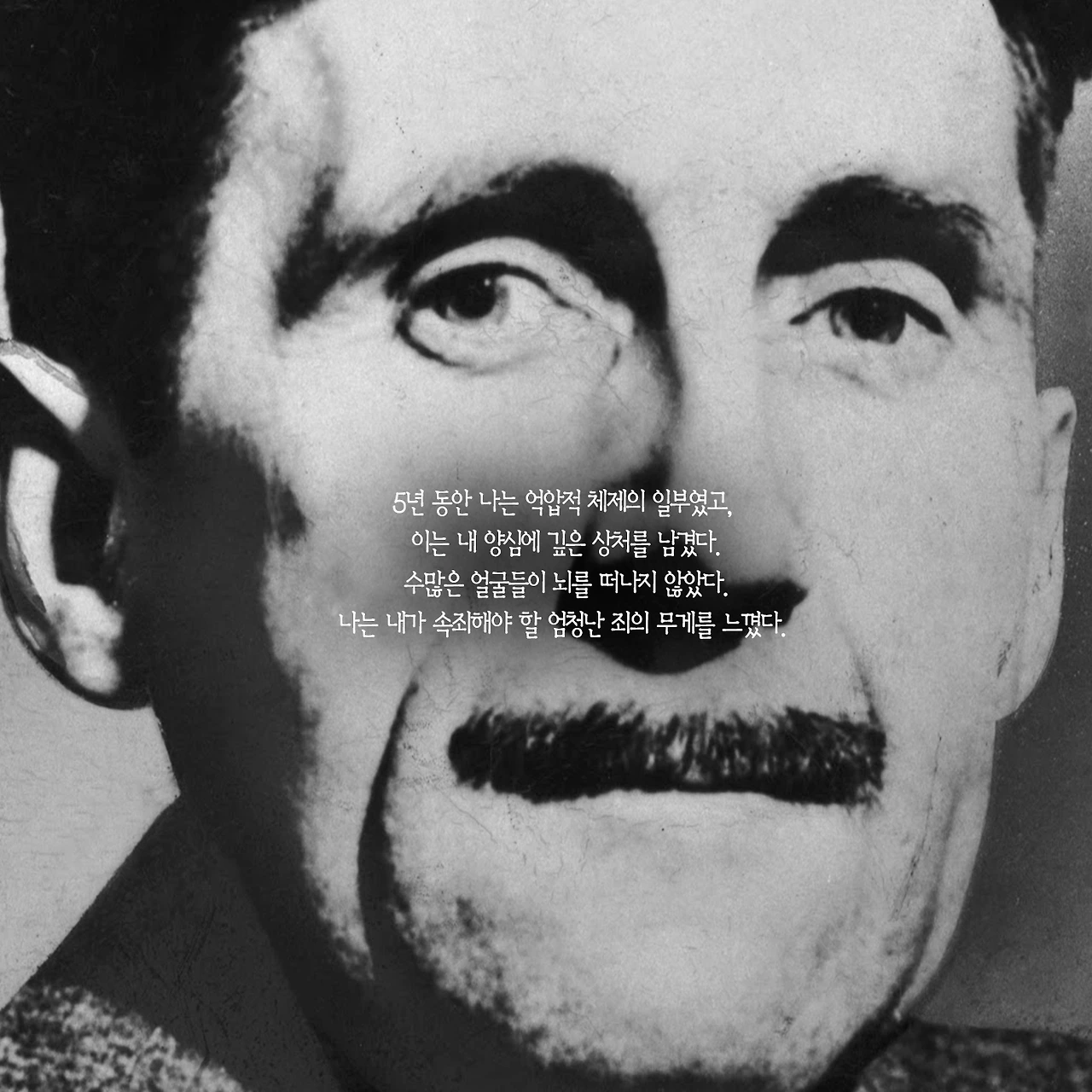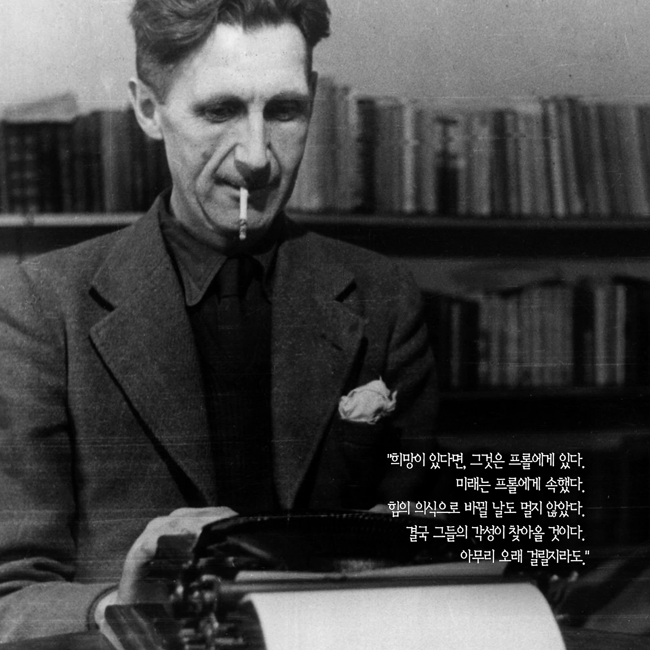 오늘 이야기할 작가도 뛰어난 상상력으로 완벽한 소설들을 발표해 현재까지도 문학사에 굵게 자신의 이름을 새겨놓은 작가다. 하지만 그가 칭송받았던 소설 속 상상력의 세계는 그의 원체험이 없었더라면 불가능한 일이었을 것이다. 피지배층에서 권력자로, 탄광의 광부로, 극빈층의 대문 안으로, 심지어 전쟁의 총탄 속에서 목덜미를 스치는 경험을 하기도 했던 작가. 오늘 이야기 나눌 작가는 에릭 아서 블레어. 필명 조지오웰이다.