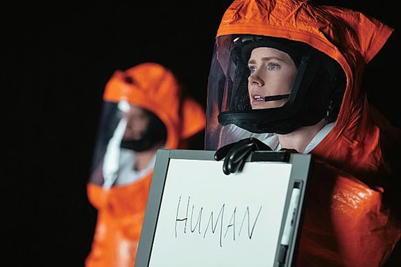 아무런 말도 통하지 않을 것만 같은 외계 생명체. 그 높은 소통의 장벽 사이에서 루이즈는 인간이라는 단어를 적어 보입니다. 그러자 외계인들 역시 자신이 무엇이라며 그들의 문자를 써서 알려주죠.