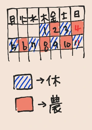 좋긴, 하루 쉬고 하루 일한다는 말이지.