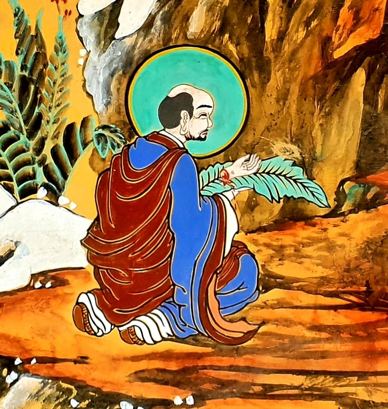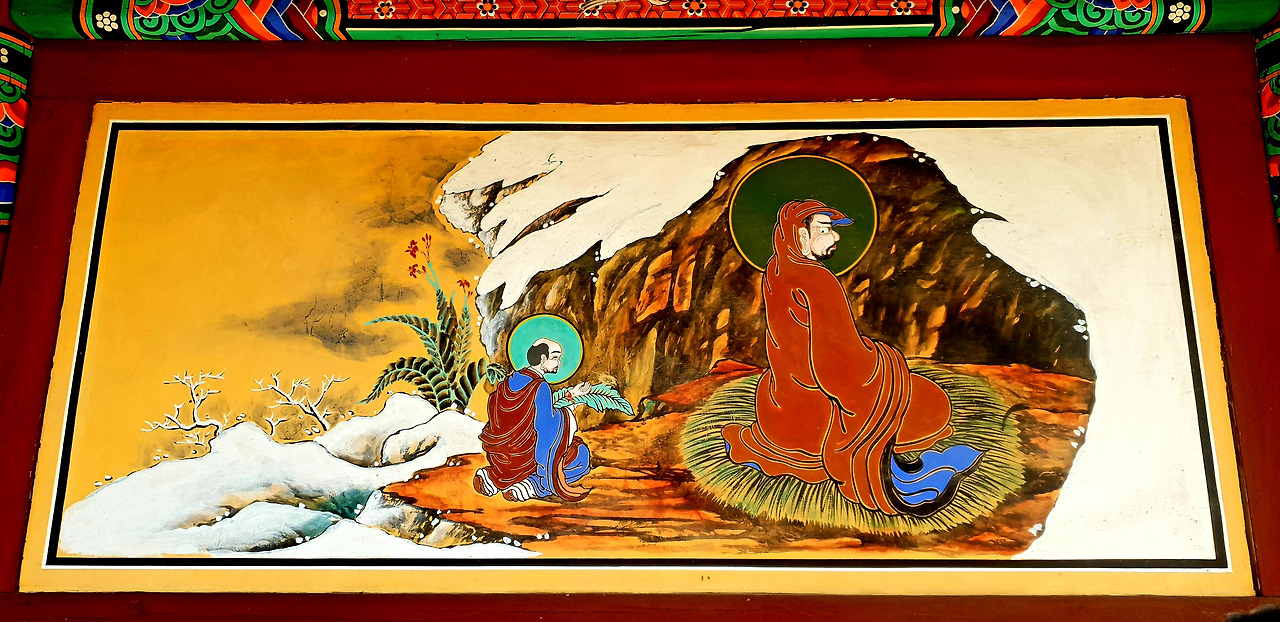 달마는 남인도 향지국 왕자였는데 중국 소림사에서 9년 머물렀다고 한다. 혜가에게 '능가경'을 전하고 다른 절로 갔다고 하는데 능가경이 뭔 내용인지는 모른다. 여하튼 소림사에서 달마 뒤를 이은 사람은 혜가라는 뜻이다.