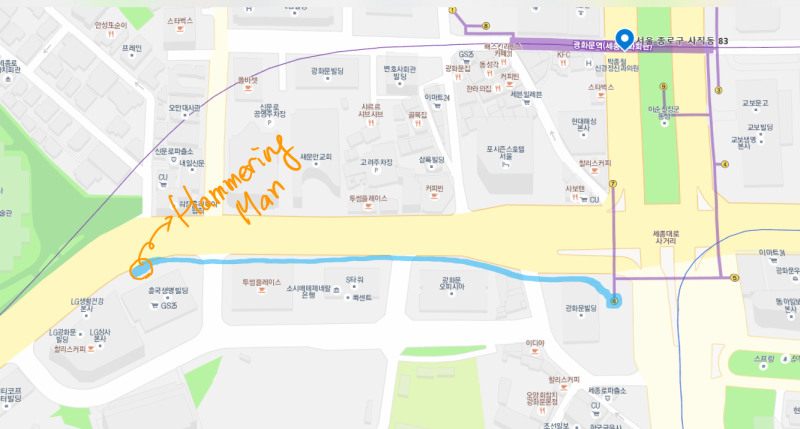 35초에 한 번씩 망치질을 하며, 광화문의 직장인을 대변하듯 매일 오전 8시부터 오후 6시까지(동.하절기 시간대 조정/토,일,공휴일 쉼) 망치질을 통해 노동과 삶의 가치를 전달하고 있습니다.