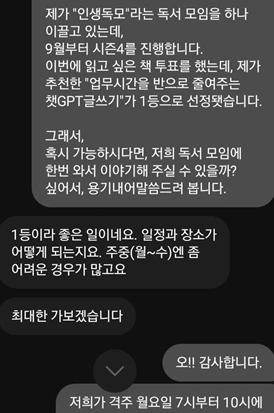 짧지 않은 조율을 거치고, 인생독모 단톡방에 남겨본다.