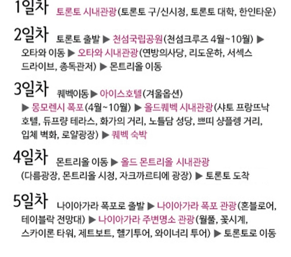 캐나다 동부에서의 4박 5일, 생애 첫 여행사 패키지여행