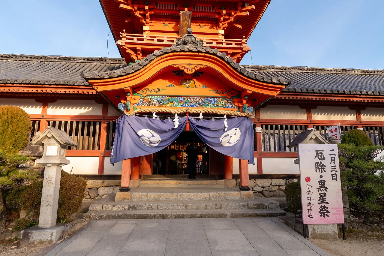 세계 각국의 사람들의 소원을 적은 에마(絵馬)도 한편에서 소원아 이루어져라라고 하는 듯 빛을 내었다. 도고 온천은 오래전 일본 황실에서 치유의 목적으로 찾았다는 전설로부터 시작해서 지금에 이르기까지 약 1000년 이상의 역사가 있다. 현재의 건물은 마쓰야마의 3대 번주 마쓰다이라 사다나가(松平 定長)가 당시 쇼군 주최로 진행한 *유적마 성공의 답례로 고쳐지어 1667년에 완성되었다. 현대에 이르러 일본의 국가 중요 문화재로 지정되었는데 전통 신사의 건축 양식인 야하타 구조로 지어졌으며 이는 현존하는 *3개의 신사중 하나라고 한다.