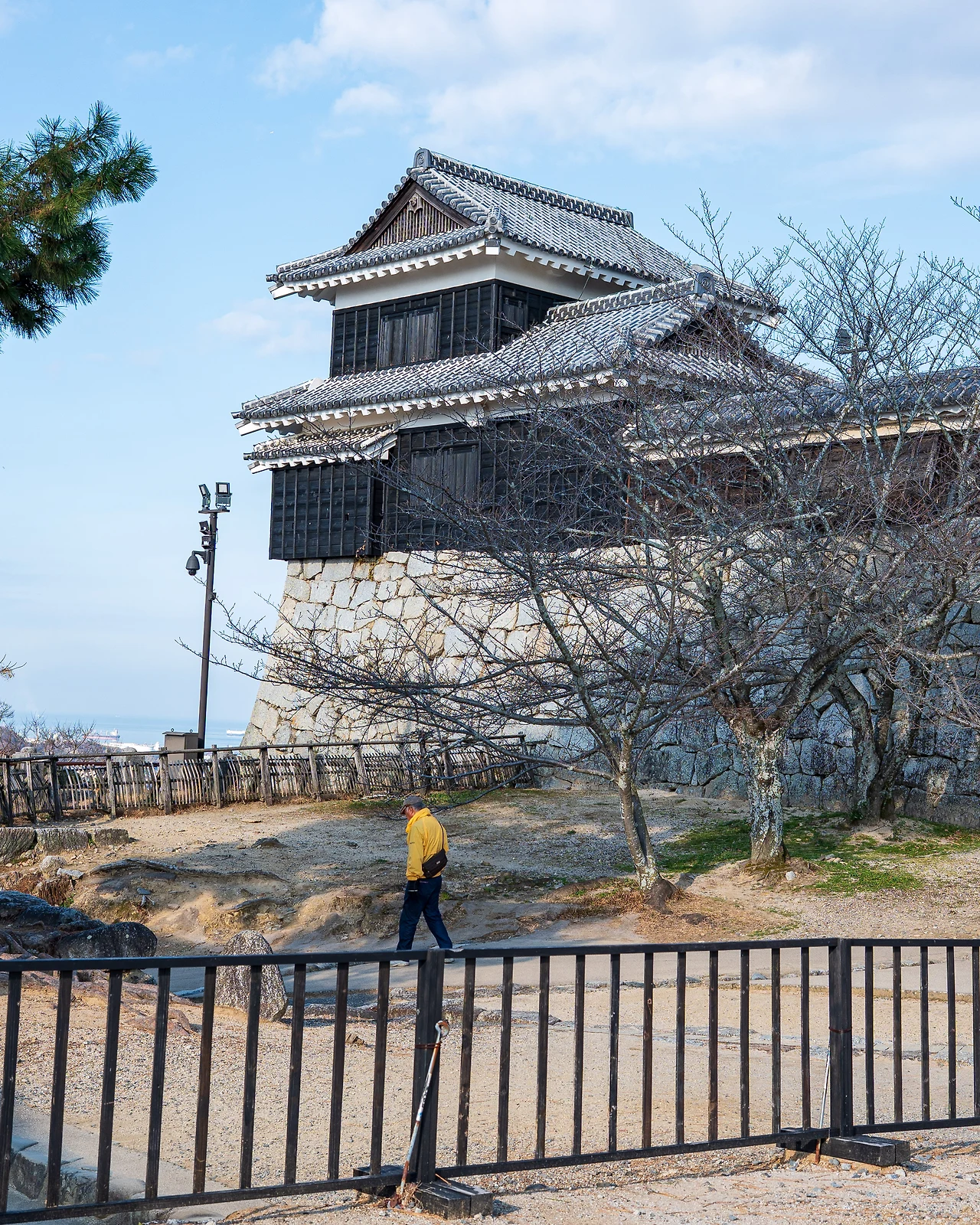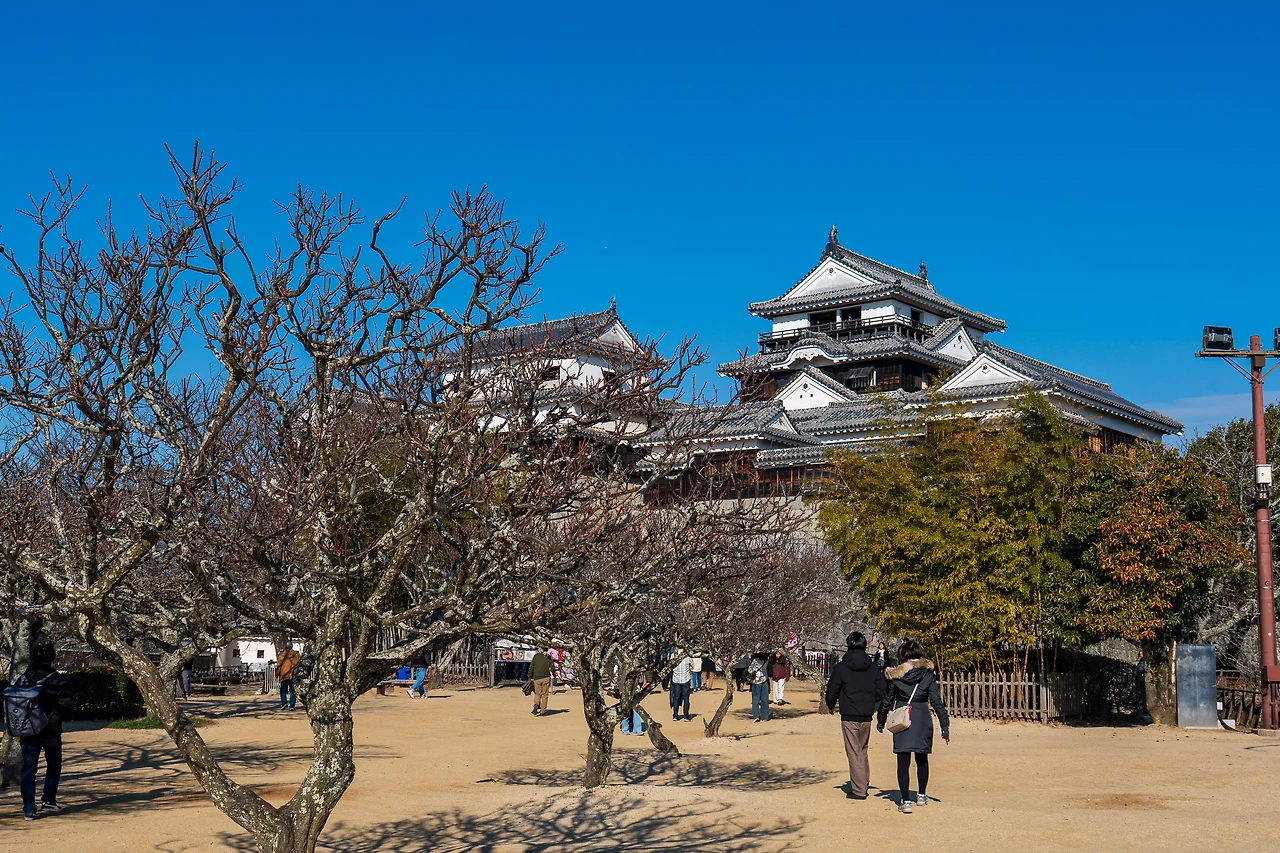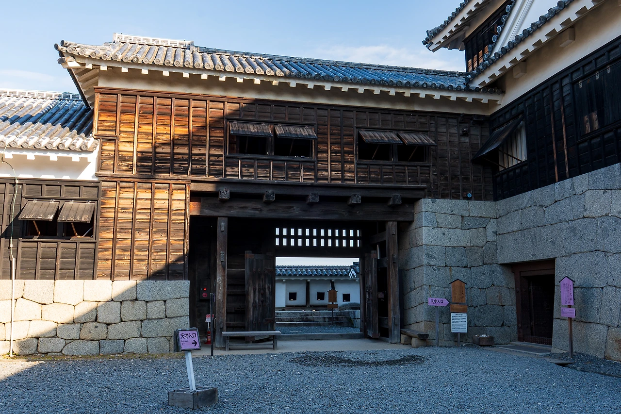 그러나 마츠야마 성은 일본에서 천수각이 보존된 단 12개의 성 중에 한 곳이기에 역사적인 의미가 깊다. 경내로 오르기 시작하면 군사 시설이라는 것을 상기시켜 주는 높이가 불규칙한 계단이 살짝 신경을 건드리고 성 중앙으로 가려고 하니 이곳저곳 갈랫길에서 인생의 고민을 하게 하거나 고개를 올려 보니 총포를 쏘는 곳, 돌을 떨어뜨리는 곳, 깨기 어려운 무거운 철 문 등이 충실히 남아있다.