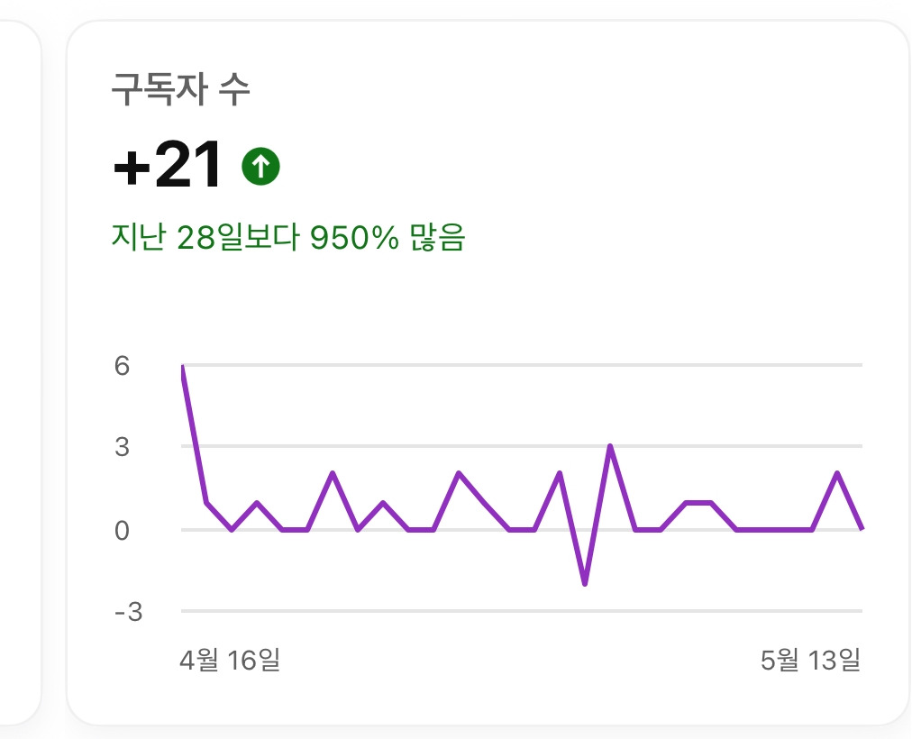 구독자는 하루에 한 두명씩 꾸준히 증가 했다기 보단 글을 쓰는 이 시점 전 후로 증가하기 시작했다. 유튜브가 레드 오션이 되고 나서 지금까지 일반인의 유튜브가성장한 계기를 보면 어떤 영상이 빵 하고 뜨고 그렇게 증가한 구독자들의 바이럴이 발생하면 다시 알고리즘이 해당 영상을 추천하고 그 영상을 본 시청자의 선택에 의해 다시 증가하는 그런 순환이다.