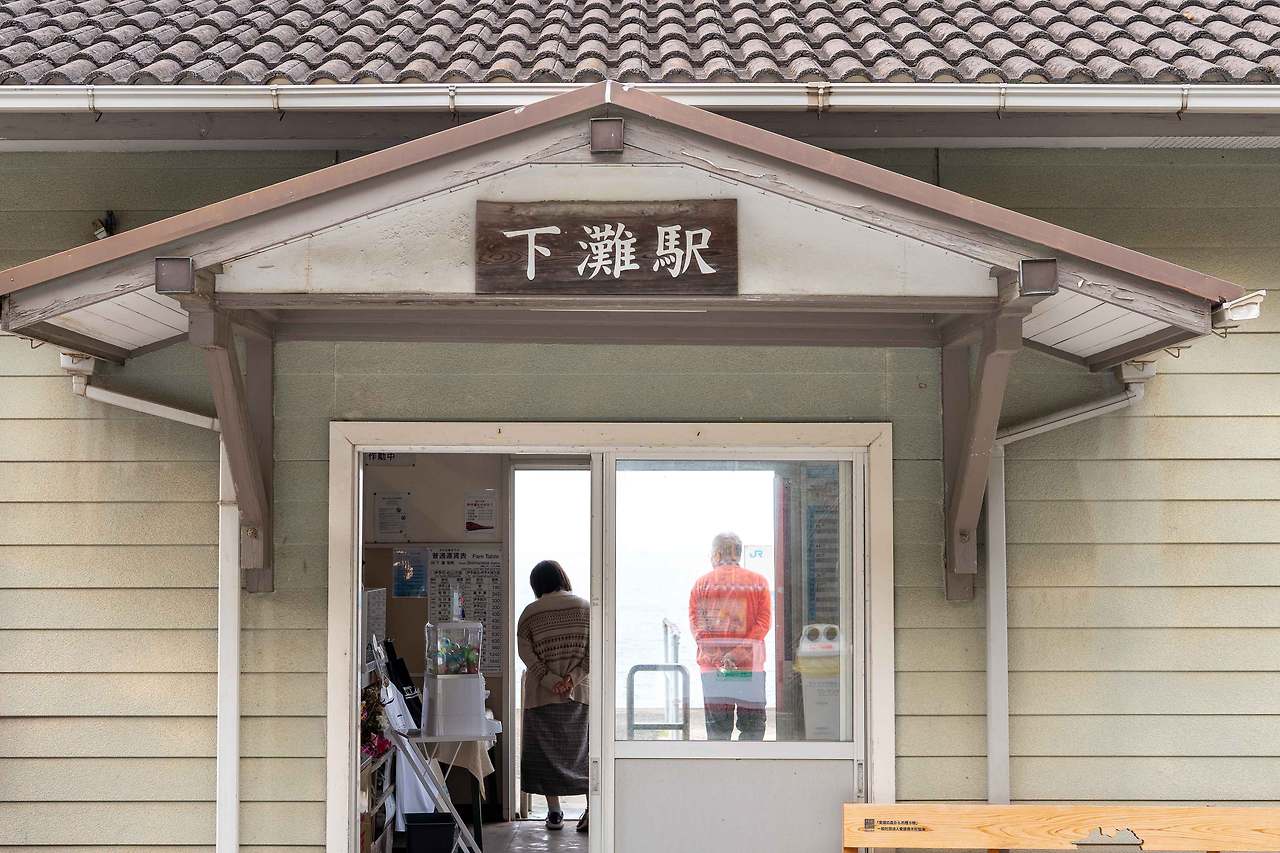 JR 시모나다 역이 바로 그 역이다. 일본에서 사진 명소로 명성을 떨치다 일본의 전국 완행열차 무제한 탑승권 '청춘18' 티켓의 표지로 선정되었다. 당시 시모나다역은 바다에서 가장 가까운 역이라는 문구로 유명세를 탔다.