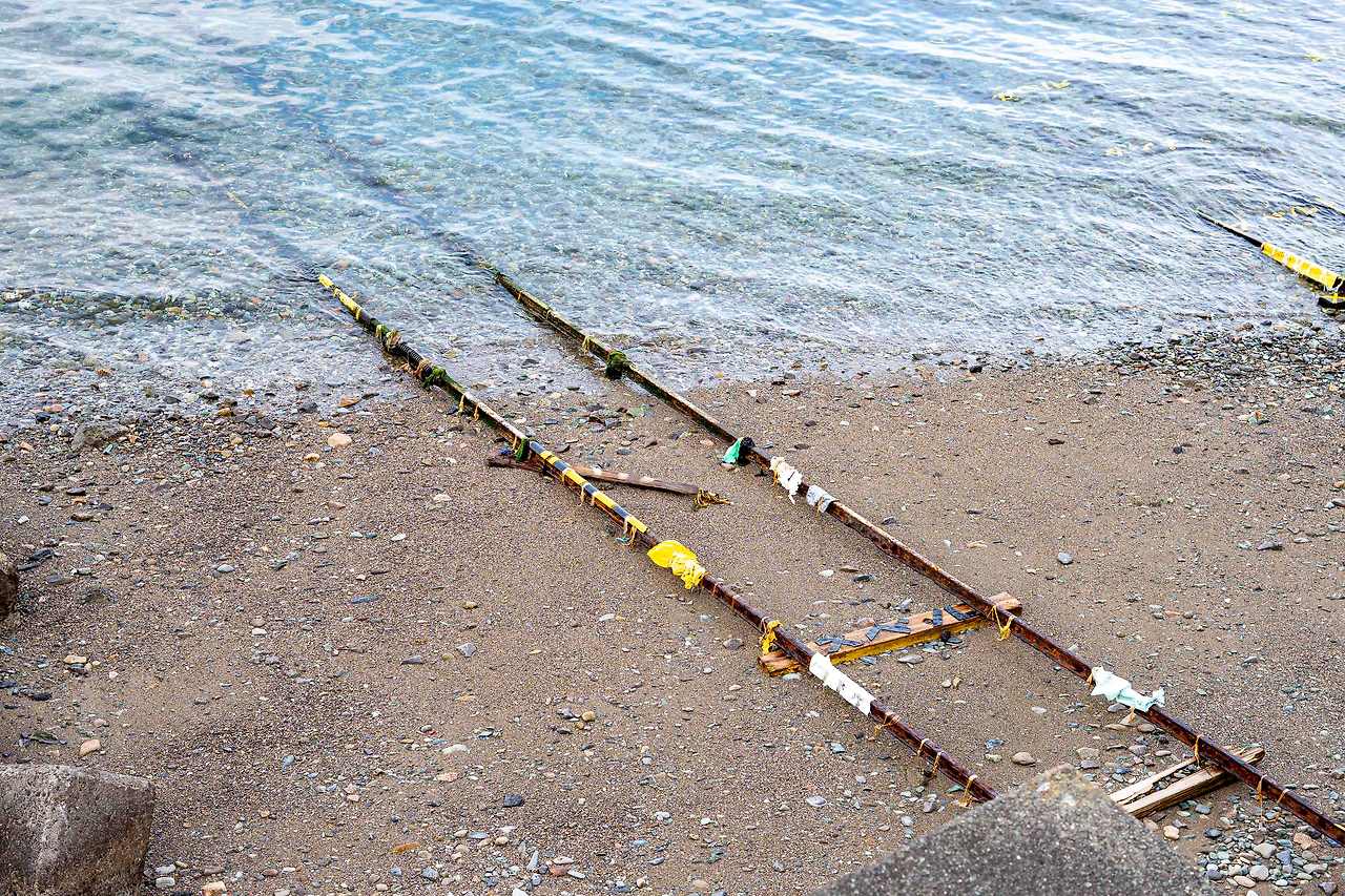 자세히 보니 이제는 운영하지 않는 작은 배를 고치는 조선소인 것 같다. 아니, 아직도 일본어와 한국어로 글자를 써 둔 것을 보니 때때로 배를 고치기 위해 이 곳으로 배를 올리는 지도 모르겠다. 그렇다면 이 철로는 철로가 아니라 배를 바다로 옮길 때 쓰는 길인가 보다.
