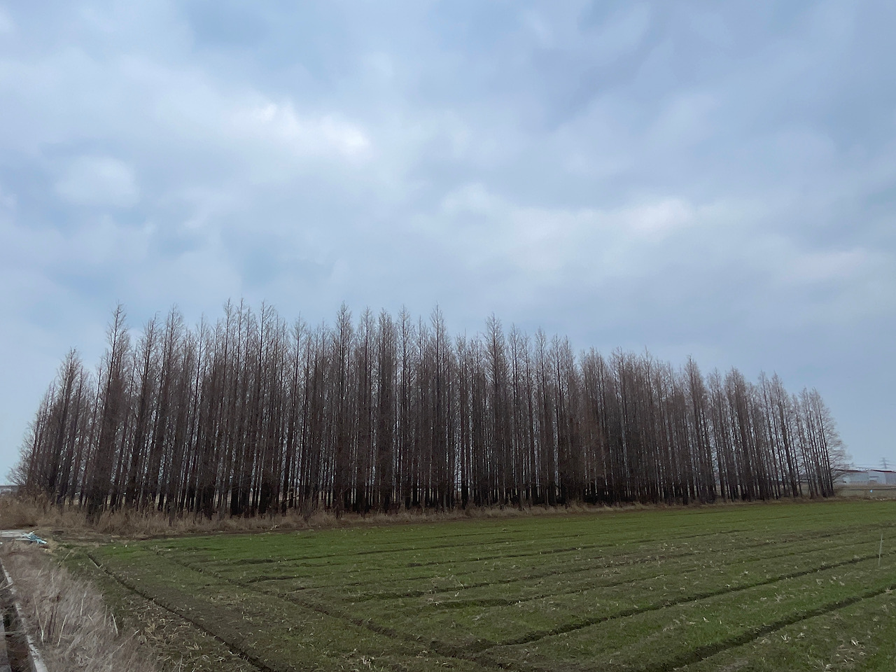 오늘은 시간이 부족해 대략의 경관만 훑어보았다. 다른 방향에서 수라 갯벌로 접근할 수 있는 길을 찾아봐야겠다. 집으로 돌아오는 길, 호남평야의 한가운데에 있는 메타세쿼이아 숲을 우연히 보게 되었다(검색해 보니 군산의 관광 명소였다!). 넓은 벌판의 한가운데에 바둑판 모양의 메타세쿼이아 숲이라니. 중국 양쯔강 상류에 자생하는 나무인데, 어떻게 하다가 호남평야의 한가운데에서 자라게 되었을까. 아마도 논을 메우고 메타세쿼이야 묘목을 심었던가보다. 겨울이라 잎이 모두 떨어져 앙상한 가지만 드러내고 있지만, 봄이 오면 막 벼내기를 한 논들 사이에서 연녹색 잎을 틔울 나무들의 아름다운 모습을 상상해 본다. 어떤 풍경일까, 궁금하니까 봄에 꼭 다시 와봐야겠다.