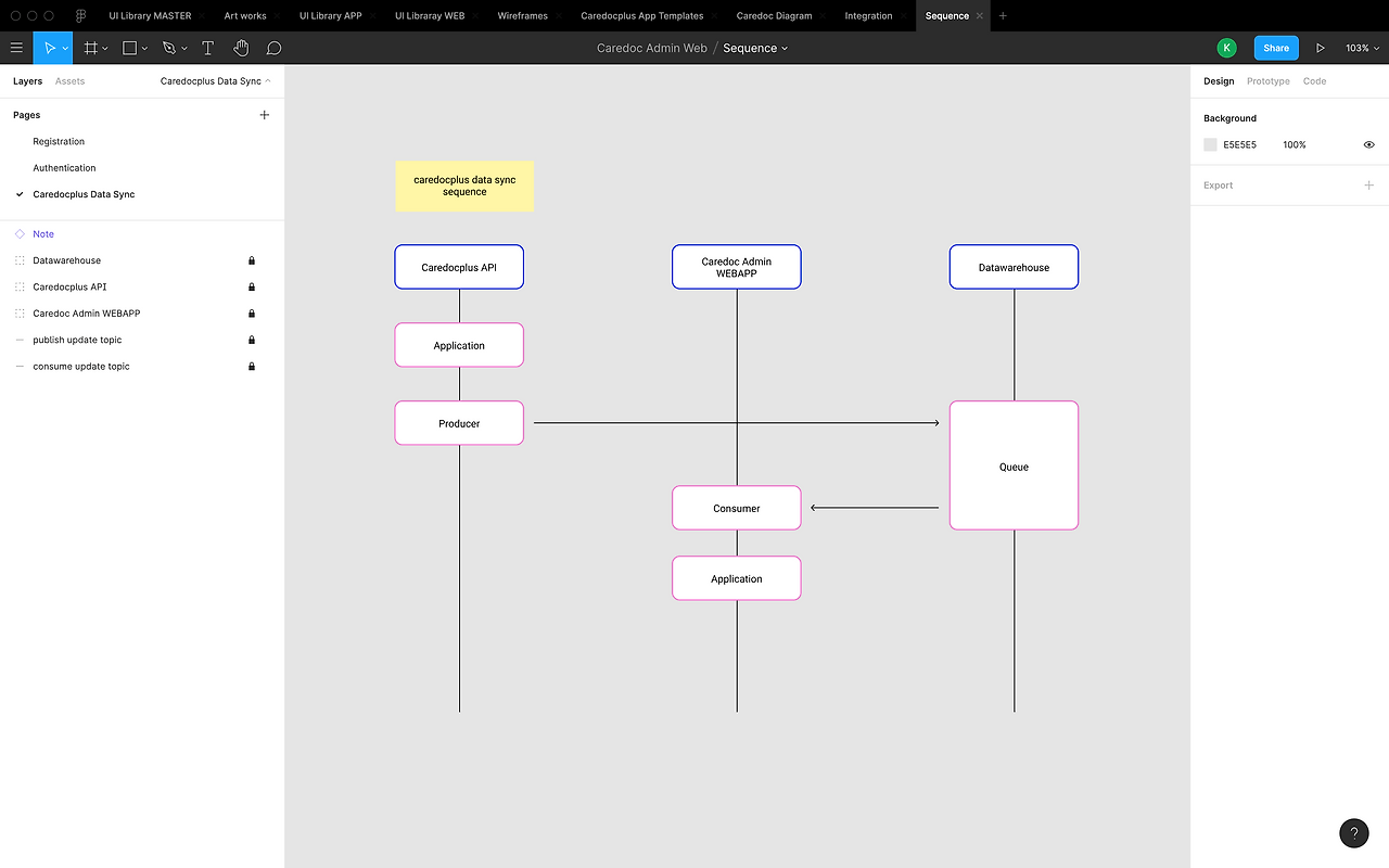 러프하게 케어닥 시스템 asset을 만들어 시퀀스 다이어그램을 그려봤습니다. 새로 시작하는 프로젝트에 선 적용해보며 앞으로 asset을 더 다듬어 나갈 예정입니다. asset들이 각 프로젝트와 서비스별로 콘셉트를 가지게 된다면 보는 사람이 이해하기도 쉬워지고 figma에 모아서 관리를 한다면 앞서 이야기한 어려운 점들을 극복할 수 있지 않을까 기대가 됩니다. 하지만 단점 또한 존재합니다. draw.io나 miro 같은 툴에서 제공하는 연결선에 대한 유지가 figma에서는 지원되지 않아 asset의 위치가 바뀔 때마다 연결선을 다시 재조정해줘야 하는 번거로움이 있지만 개인적으로는 연결선 유지로 오히려 꼬이거나 다시 그릴 때가 많아 차라리 위치를 재조정하는 편이 낫다고 생각합니다. (왠지 합리화인 것 같기도...)