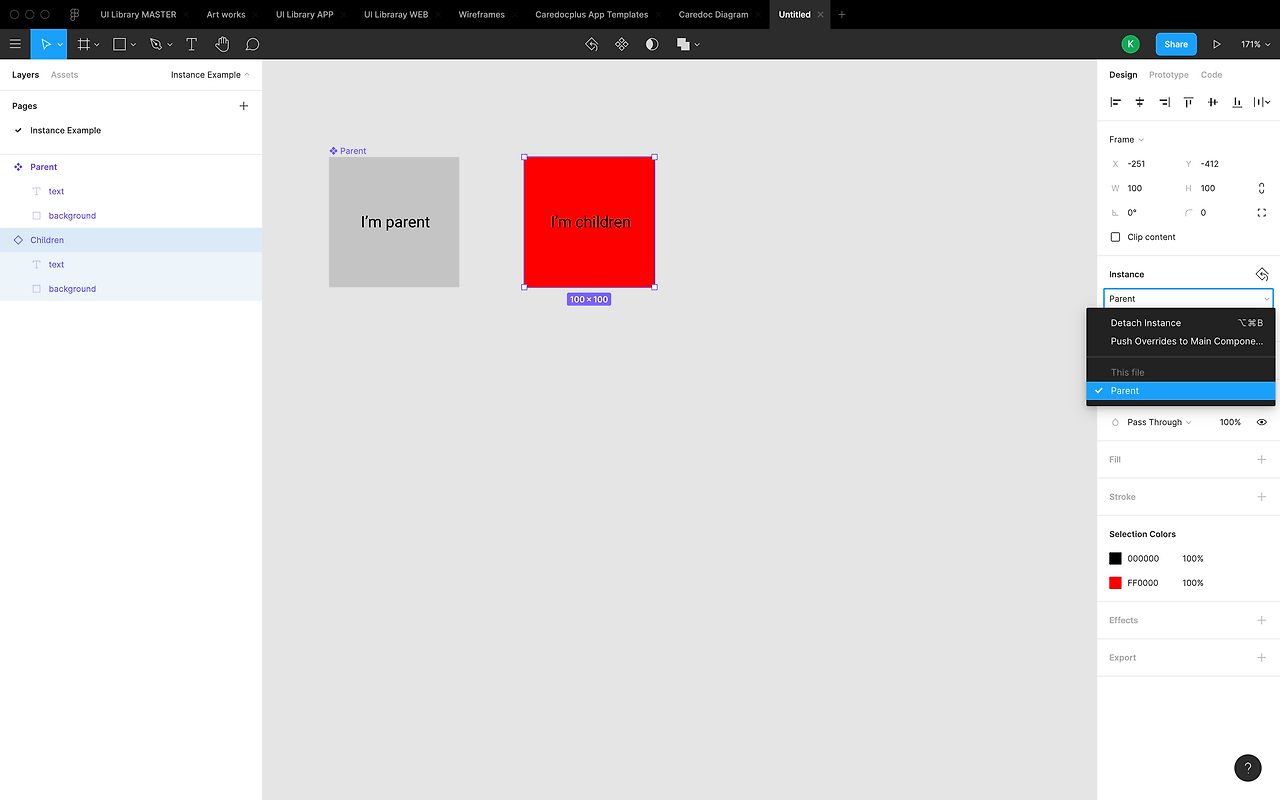 일종의 상속 개념으로 master component를 만들 수 있어서 code에 친화적이기도 하며 반복 작업을 줄여 생산성 향상을 할 수 있습니다.