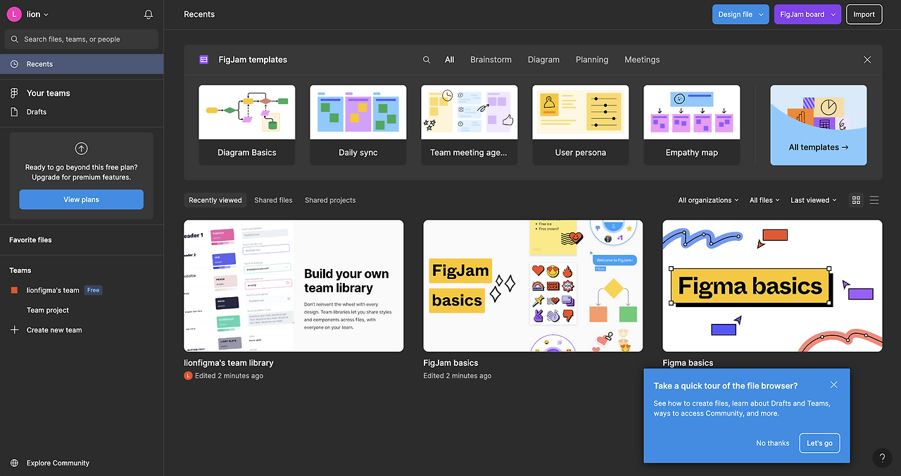 하지만 그중에서도 피그마가 가장 빠르게 성장할 수 있었던 이유는 일단 인터넷만 된다면 장소에 구애받지 않고 웹환경에서 원활하게 사용이 가능하다는 점, 그리고 무료라는 점 때문일 거예요.