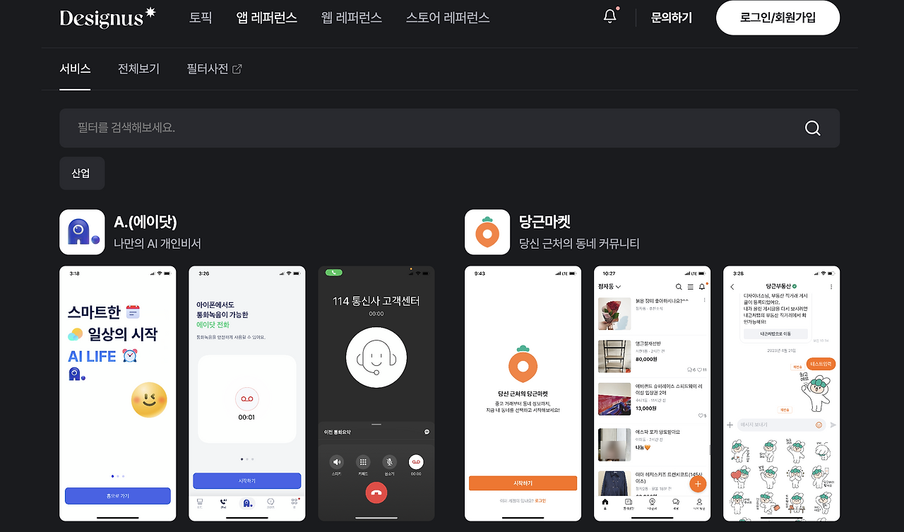 실무에서는 실제 앱을 직접 사용하고, 그 사용에서 나오는 스크린들과 어디를 클릭했는지, 인터렉션은 어땠는지 까지 레퍼런스로 여깁니다. 실제 다운로드하지 않고 아카이빙 페이지에서만 앱을 접하게 되면, 어디를 눌렀을 때 넘어가는지, 어떤 인터렉션을 통해 다음 화면이 나오는지 정확하게 알 수 없어요.