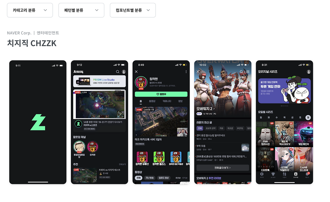 가장 유명한 사이트! 해외 유명 앱들의 패턴과 스크린샷을 확인할 수 있습니다. 스크린샷 종류도 많고, 안드로이드 ios 둘 다 제공됩니다. 시기별로 업데이트를 해서 이전 화면도 볼 수 있습니다.