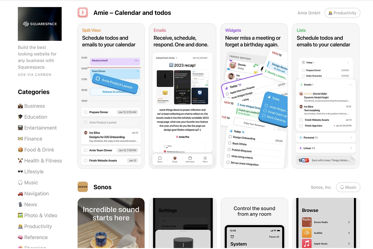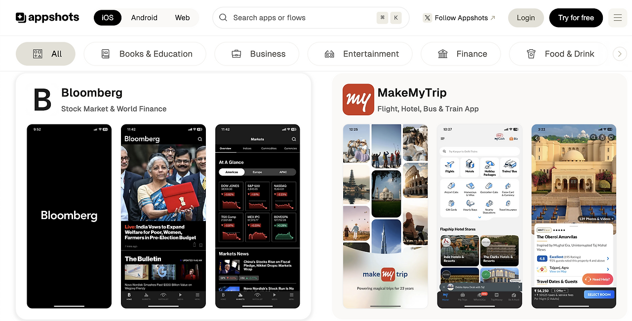 앱스토어 스크린샷들을 보아놓은 아카이빙 사이트입니다. 앱을 올릴 때 앱의 얼굴이 되는 마켓 커버들, 스크린샷들을 디자인해야 하는데 흐름을 참고하기에 좋습니다.
