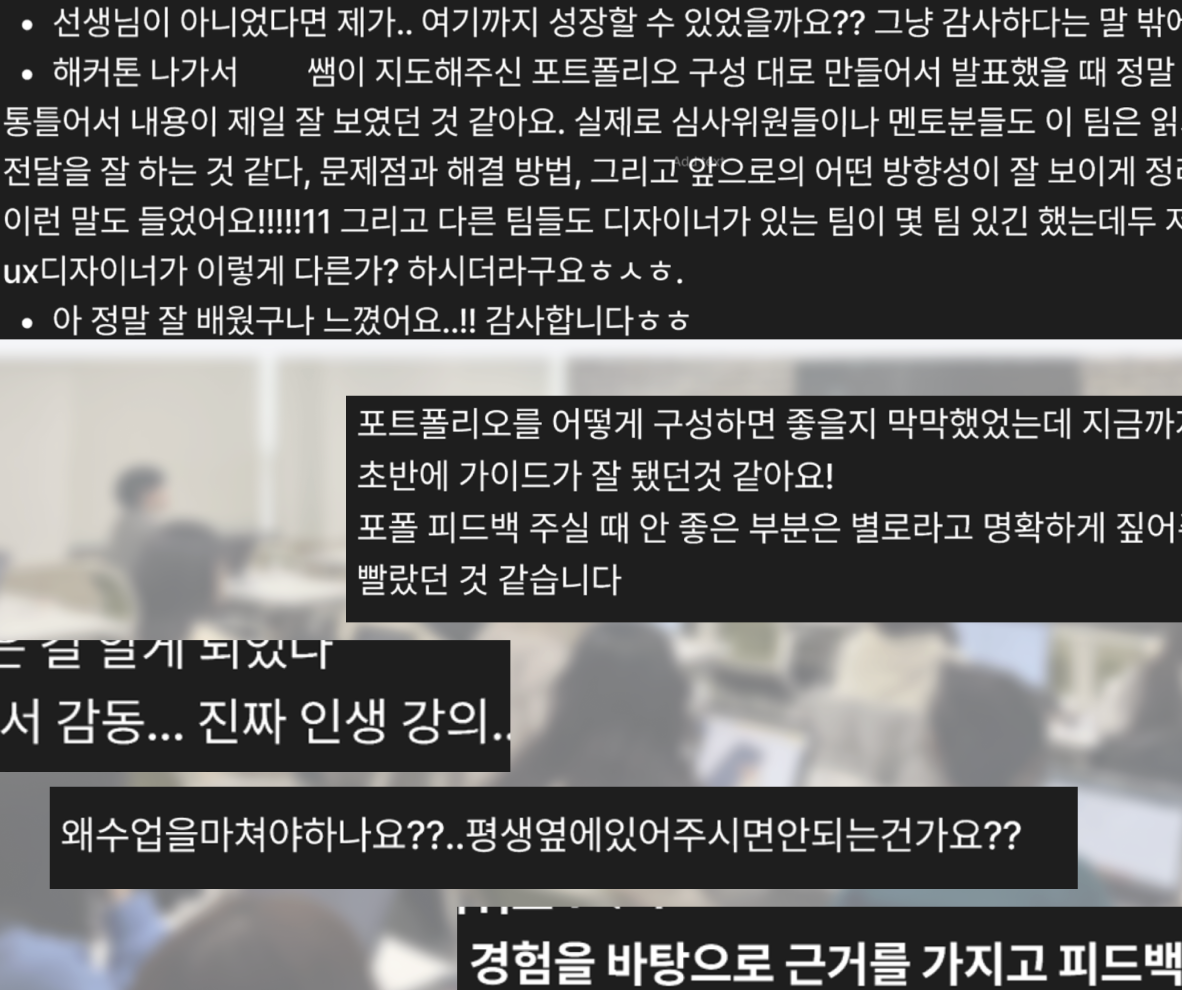 강의는 학생분들의 좋은 피드백으로 3차까지 연장할 수 있었습니다. 실제 수강생 후기들입니다.