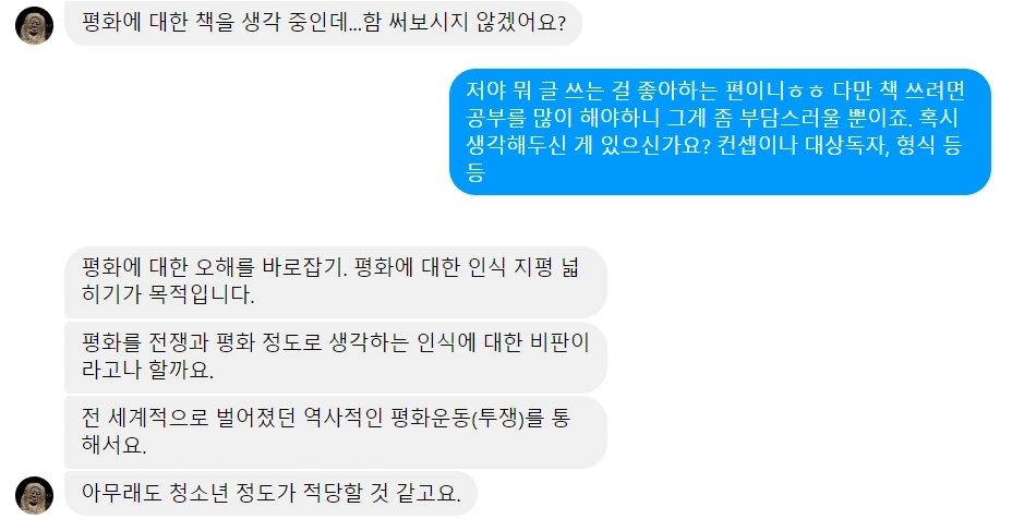평화에 대한 책을 생각 중인데... 함 써보시지 않겠어요?
