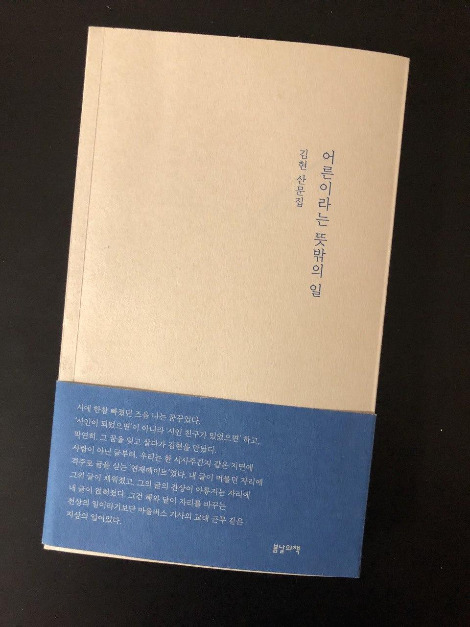 스트레스엔 역시 술. 이유는 모르겠지만 막걸리가 땡겼고, 막걸리를 마시며 볼만한 책이 뭐가 있을까 찾던 중에 역시나 이유는 알 수 없지만 김현 시인의 산문집 <어른이라는 뜻밖의 일>을 들었다.