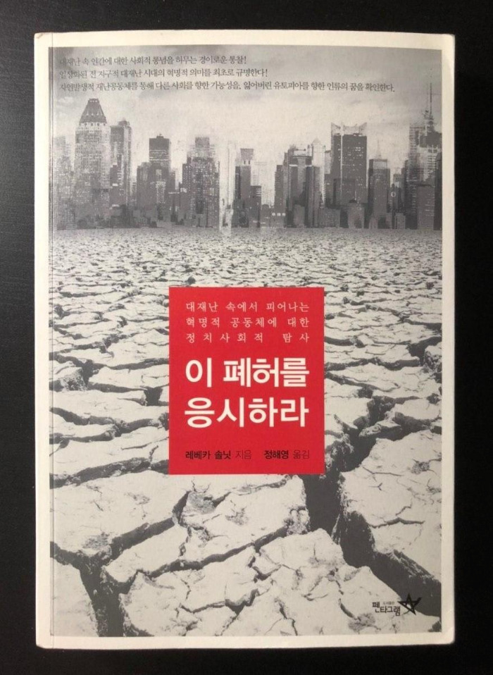 모든 것에 때가 있다면 책을 읽는 데도 때가 있을까? 레베카 솔닛의 책 『이 폐허를 응시하라』를 산 것은 세월호 참사 직후였다. 아직 페미니즘 리부트가 일어나기 전, 다시 말해 레베카 솔닛이 맨스플레인으로 한국에서 유명해지기 전이었다. 나는 저자에 대한 정보 없이, 부제 때문에 샀다.