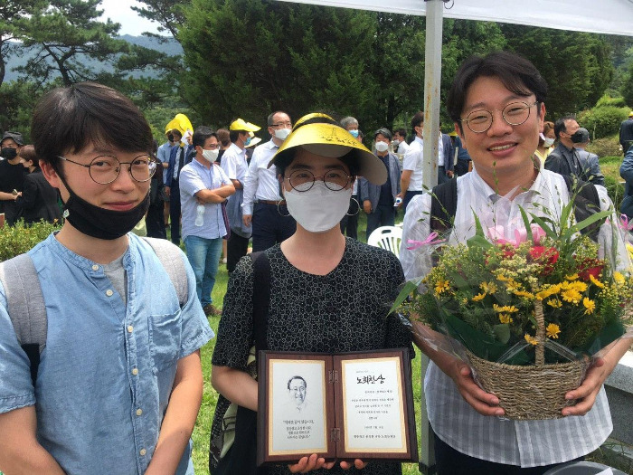 노회찬상 시상식은 노회찬 의원이 잠들어 있는 모란공원에서 진행됐다. 나는 사실 모란공원에 처음 가봤다. 운동권으로 살아온 지 21년째인데 정말로 모란공원 처음 가봤다. 뭐 그럴 수도 있지. 사실 나는 무덤 가는 걸 별로 안 좋아하고(천마총이나 무령왕릉처럼 유적지면 좋아한다) 열사 추모도 필요하다고 보지만 내가 하고 싶은 일은 아니다. 그리고 내가 주로 해온 평화운동에는 모란공원에 묻힌 분이 없다. 암튼 모란공원 처음 가봤다.