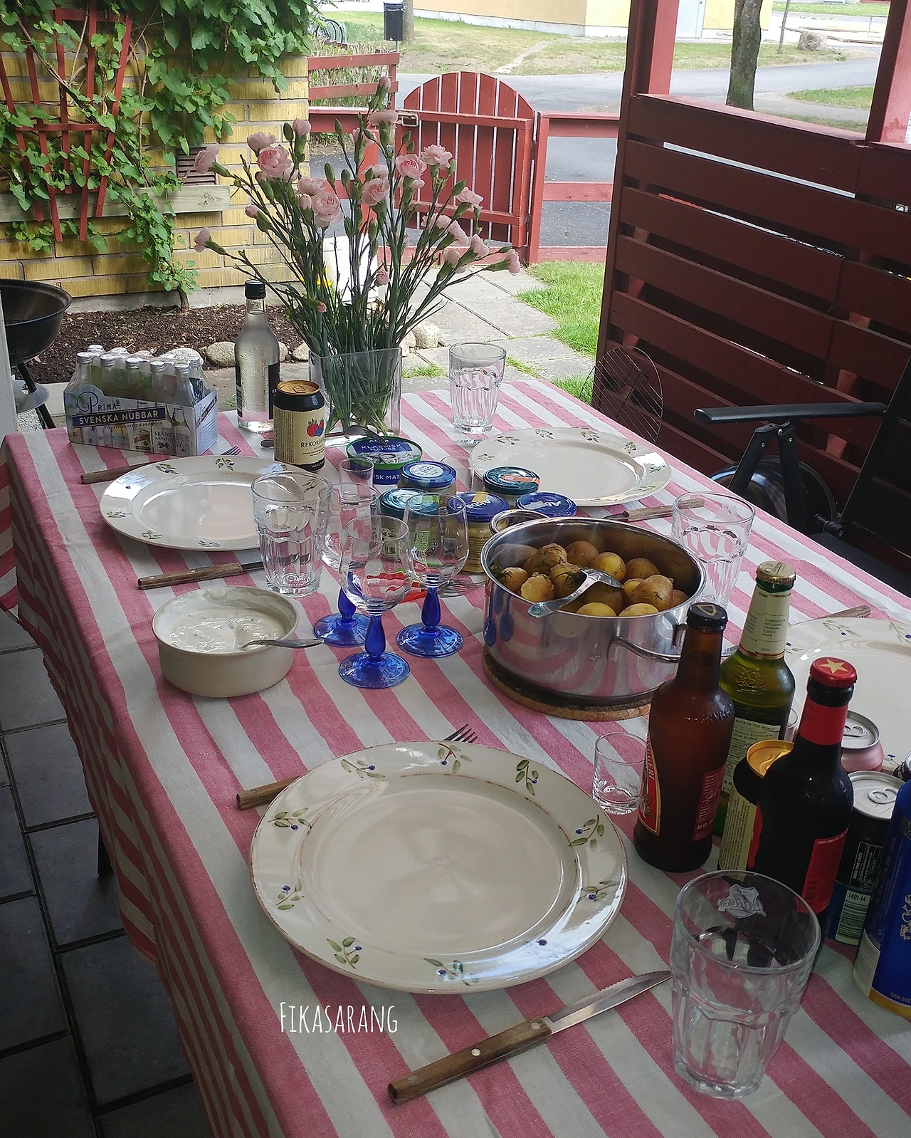 스웨덴 가정집에서 초대해주신 분께서 스웨덴 하지 축제를 기념하기 위한 전통적인 레시피로 구성된 삶은 감자, 술에 약한 나를 위해 준비해주신 알코올 도수가 낮은 과일 맥주(이 맥주는 2012년 스웨덴 교환학생을 방문했을 때도 느낀 것이지만 모두 수입을 원했던 제품이다), 스웨덴 하지축제 기념 스냅스 보드카 시리즈, 절인 생선 등이 준비되었다. 스웨덴 가정집에 방문 차 어떤 선물을 살 지 고민하다가 유럽에서는 집을 방문 할 때에 꽃을 선물해 주는 것이 좋다는 내용을 알게 되어 동네 근처 마트에서 파는 꽃을 사서 선물로 드렸는데 바로 테이블로 올려주셔서 기뻤다.