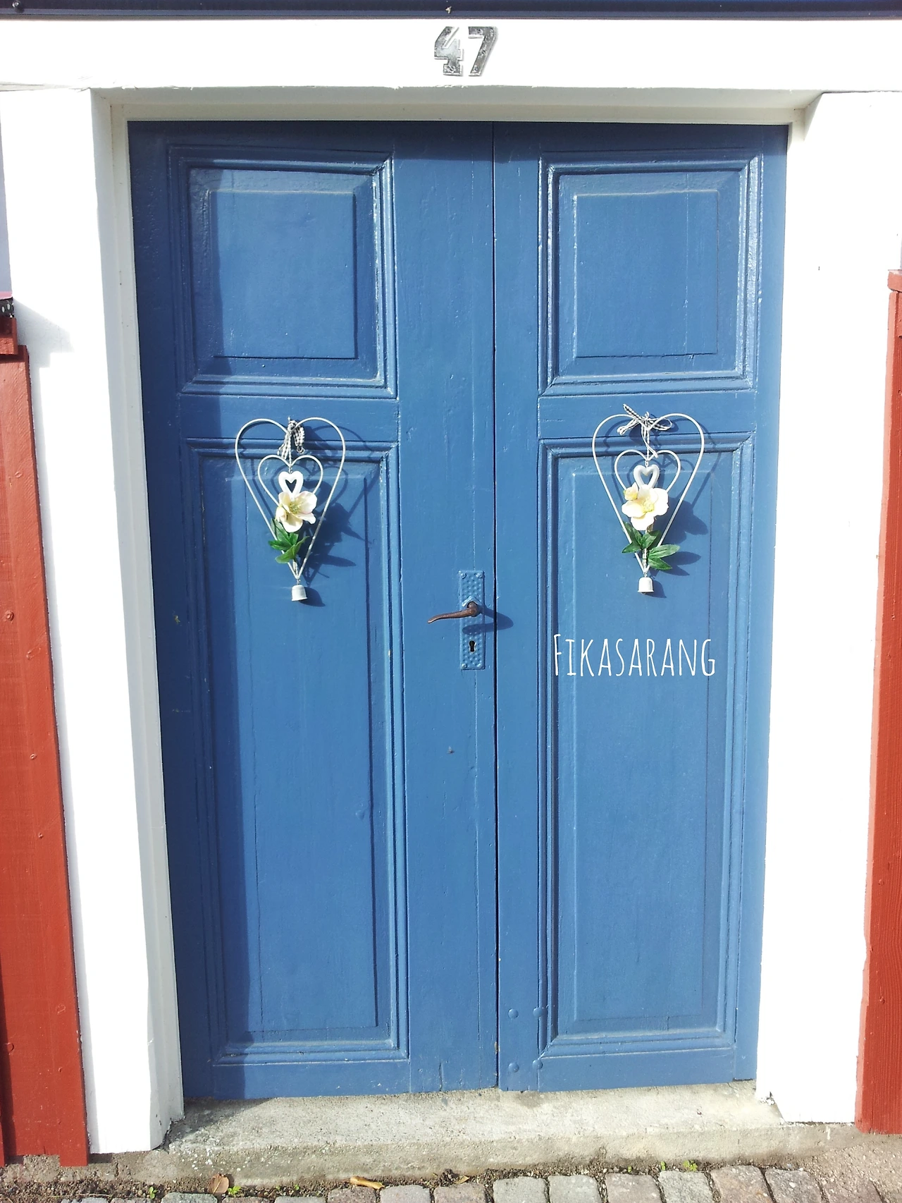 스웨덴 비스비 골목 안쪽으로 들어오면 길가에 낮은 주택들이 펼쳐져 있고, 당시 여름 휴가 기간이 아니었지만 주택 인테리어에 관심이 많은 스웨덴 사람들의 성향 덕분에 아름답게 꾸며진 몇 주택을 볼 수 있었다. 주택에 들어가는 입구인데, 아름답게 장식해 놓고, 스웨덴 주택의 "주황색"과 대비되는 보색으로 파란색 문을 장식해 놓은 모습이 멋있었다. 한편으로는 여름 이후에 방문 하지 않을 공간을 아름답게 꾸며놓는 다는 점이 신기하기도 했다. 스웨덴 사람들의 가구 디자인, 집 인테리어 등 미적인 감각은 패션, 주거 등 다양한 방식으로 표현되고 있다. 스웨덴 교환학생과 이후 2016년에 스웨덴을 방문하면서 단순하면서도 기능적인 스웨덴의 디자인 표현 방식에 놀랐다.