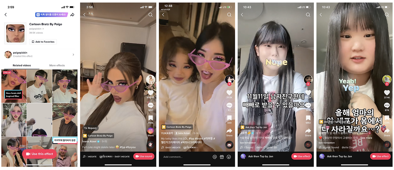 단순히 필터를 선택한 것만으로도 유저는 1) 뭘 콘텐츠로 만들지 고민하지 않아도 된다. For You(추천페이지)에서 스와이프를 계속하다 보니 같은 필터를 사용한 콘텐츠를 어렵지 않게 자주 볼 수 있었다. 2) 사람들이 자주 본다는 것을 보여준다. 사용한 필터를 클릭하면 위에서 보았듯 즐겨찾기를 쉽게 할 수 있고, 이를 이용해 콘텐츠를 제작하기 편리한 UX로, 3) 빨리 쉽게 만들 수 있게 환경을 갖췄다.