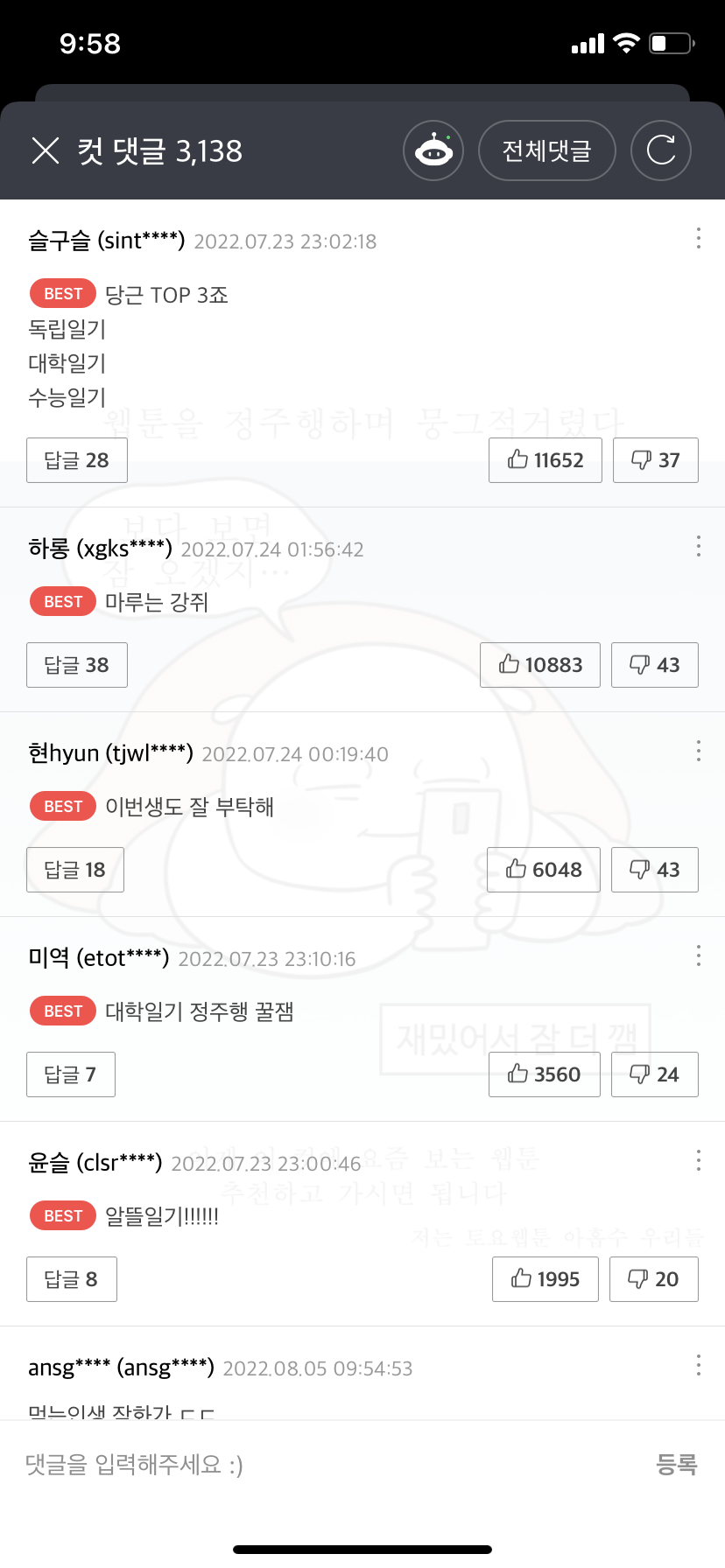 지금 네이버 웹툰의 댓글은?