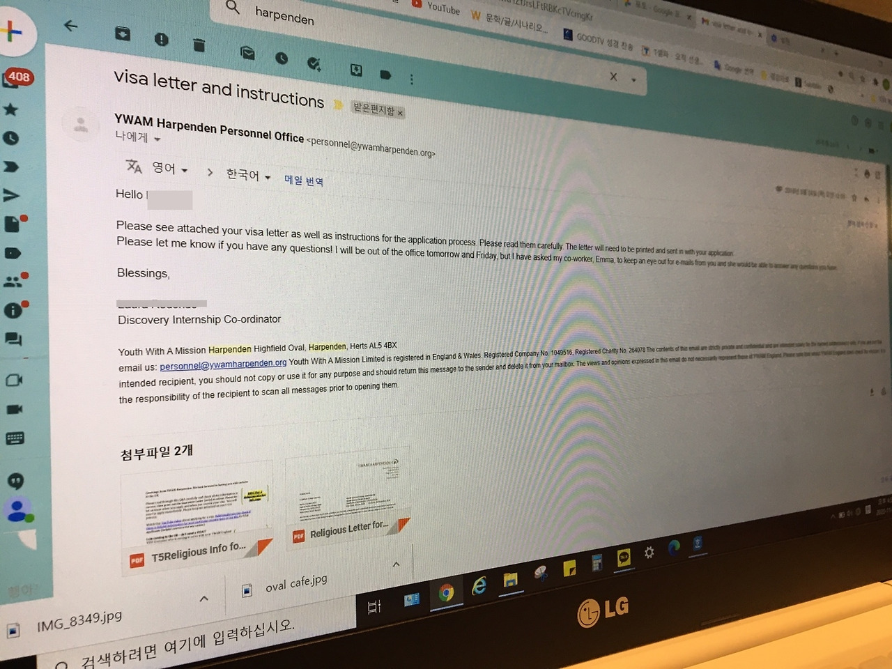 하와이? 너무 마음에 들었지. 따뜻하고 아름다운 자연이 눈 앞에 그려졌어. 그 선교단체에서 일을 도와주는 대신에 숙소와 식사를 제공받을 수 있어. 무급이긴 하지만 나는 '이거다' 싶었지. 예산이 넉넉한게 아니니까 그곳에서 몇 개월 보낸 뒤 천천히 다음 진로를 찾으면 되겠더라고. 지원 메일을 보내고 더 알아보니 YWAM은 하와이에만 있는 단체가 아니라 전세계에 1200여개의 센터가 있는 무지하게 큰 세계적인 단체였어. 그래서 영어권을 좀 찾아보다가 영국에 있는 센터를 발견하고 그곳에도 지원 메일을 보내게 되었어.