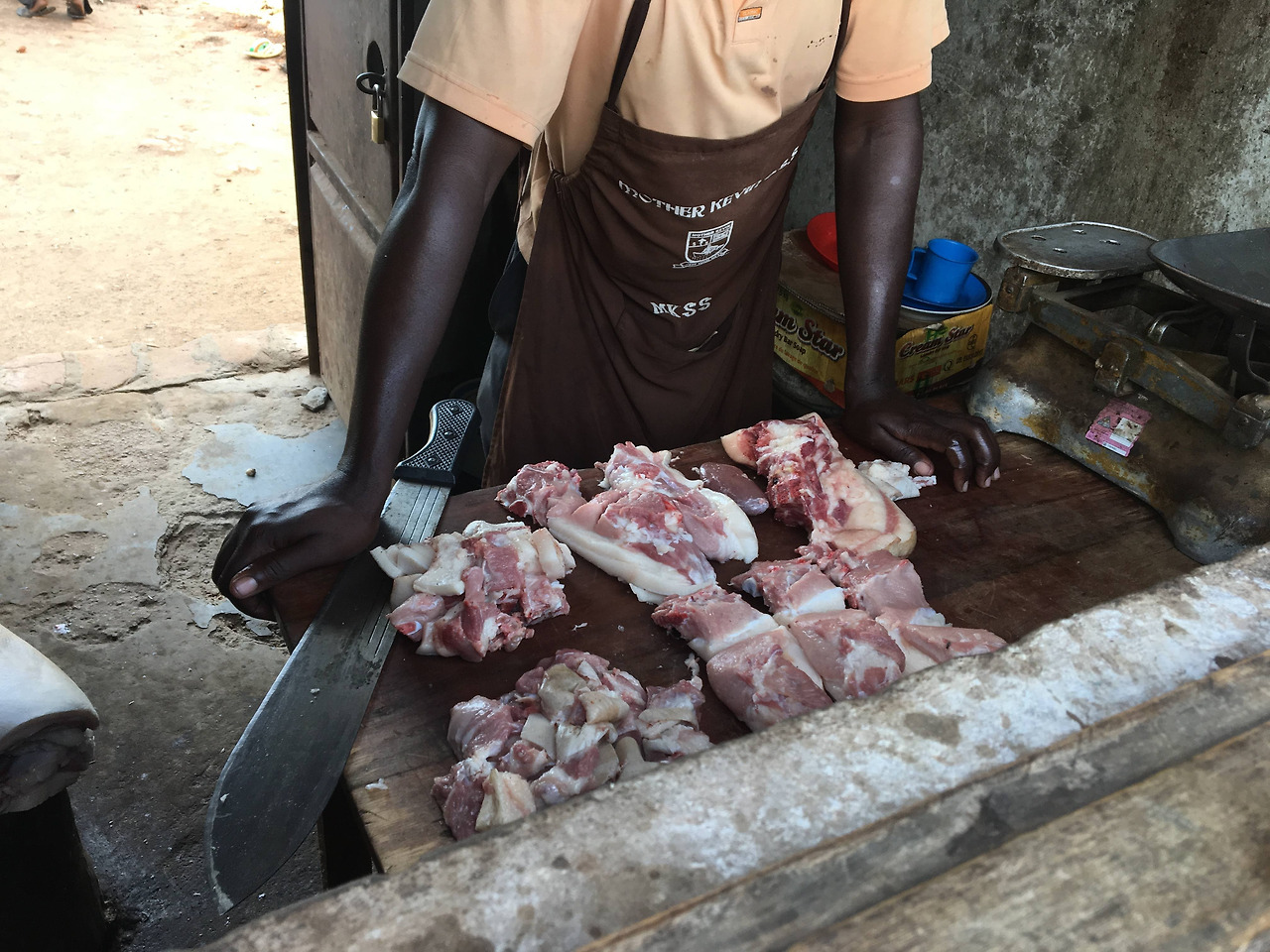 어쨌든 여기에서 돼지고기 3킬로그램을 샀어. 1킬로그램에 9,000 씰링이라고 해서 50,000 씰링을 냈더니 이번에는 13,000 씰링을 거슬러 주는 거야. 이번에는 10,000 씰링을 적게 준 거지. 아무리 설명을 해도 맞게 줬다고 우기길래 핸드폰 계산기를 꺼내서 숫자를 두들겼더니 그제야 10,000 씰링을 더 줬어. 만약에 시장에서 쌀 사장님을 만나기 전이었다면 거스름돈을 적게 내려는 수작인 줄 오해했을 거야. 그런데 두 번째 이런 일이 벌어지니 그냥 계산이 안돼서 그런 거라는 생각이 들더라고.