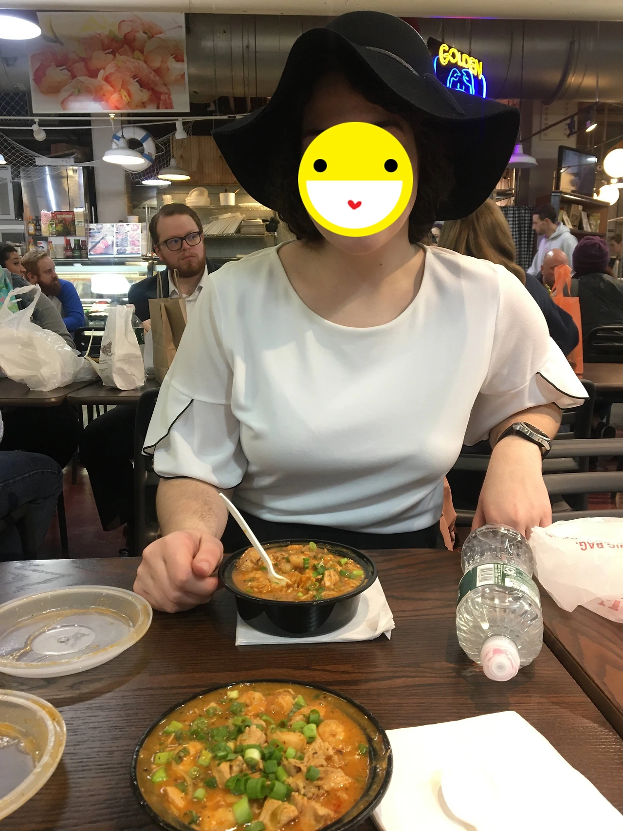 저녁 식사를 담고 있는데, 뒤에서 누군가 갑자기 말을 걸어왔어.