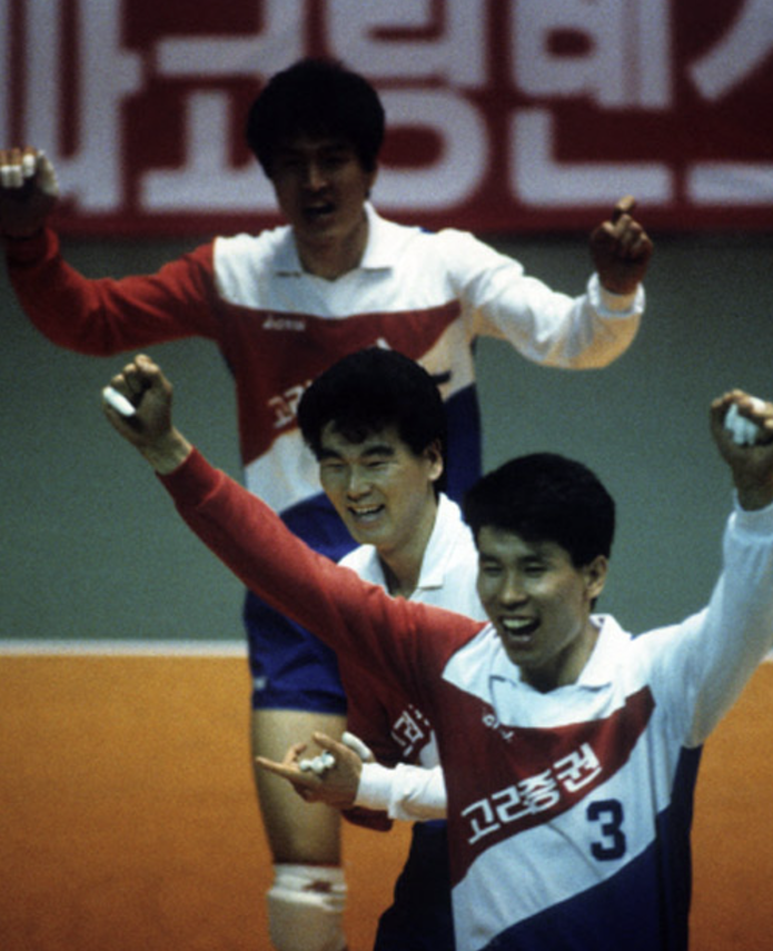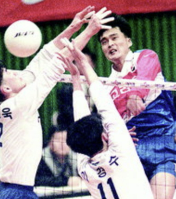 강만수-장윤창과 함께 한국 남자배구 3대 거포로 활약한 강두태(금성). 안타깝게도 1991년 33살의 젊은 나이로 세상을 떠났다.