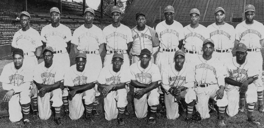 니그로리그 <캔자스시티 모나크스> 시절의 재키 로빈슨(앞줄 왼쪽에서 세 번째)