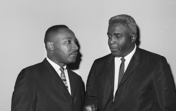 대표적인 흑인 인권운동가 마틴 루터 킹(좌)과 재키 로빈슨(우). 재키 로빈슨은 은퇴 후 열렬한 흑인 인권운동가로 활동하였다.