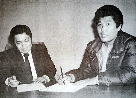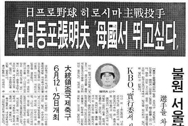 일본시리즈를 두 번이나 제패한 일본 프로야구 최정상급 투수인 장명부의 한국 프로야구행은 엄청난 화제였다. (삼미와 계약하고 있는 장명부)