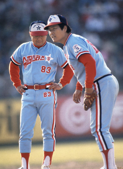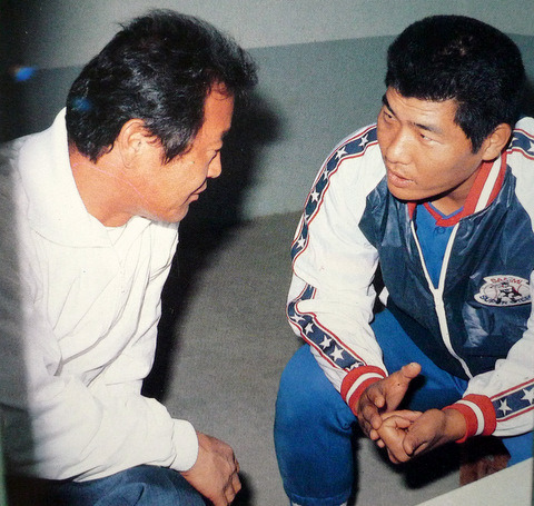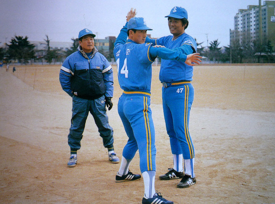 83년 <삼미 슈퍼스타즈> 돌풍의 두 주인공 김진영 감독(좌)과 장명부(우). 장명부는 83시즌 무려 30승을 거두는 괴력을 보였다.