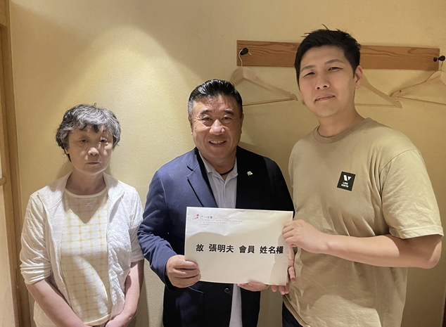 2023년 일구회는 故 장명부의 게임사 성명권 금액을 유족들에게 전달했다. 왼쪽부터 장명부의 부인 후쿠시 지에코, 일구회 김광수 회장, 장명부의 3남 후쿠시 마사아키.