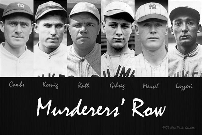 아직도 메이저리그 역사상 최강 타선으로 평가받는 1927년 <뉴욕 양키스>의 <Murderers' Row(살인자 타선)>. 왼쪽에서 세 번째가 베이브 루스, 네 번째가 루 게릭.