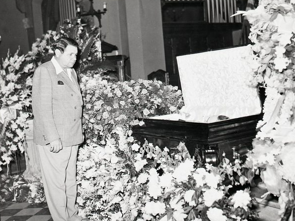 루 게릭의 장례식에서 조문하고 있는 베이브 루스